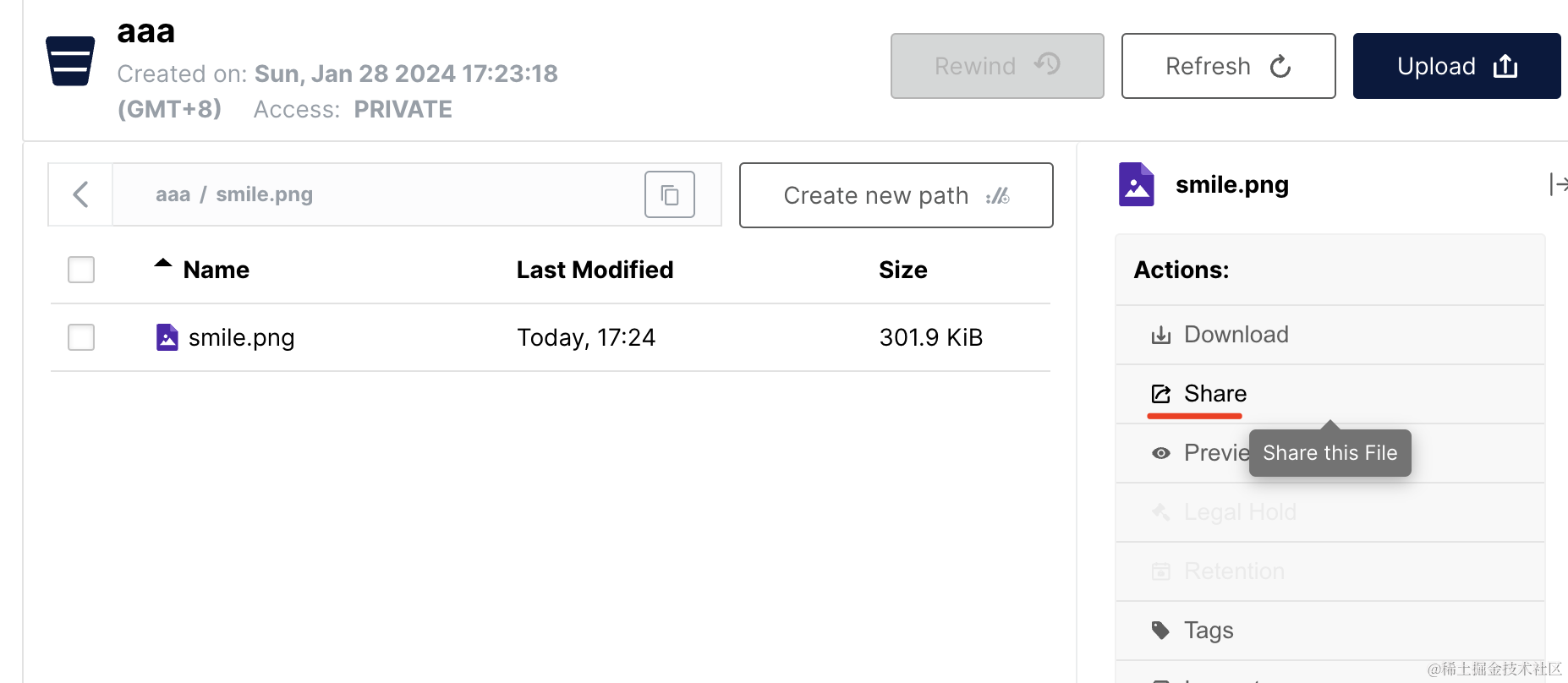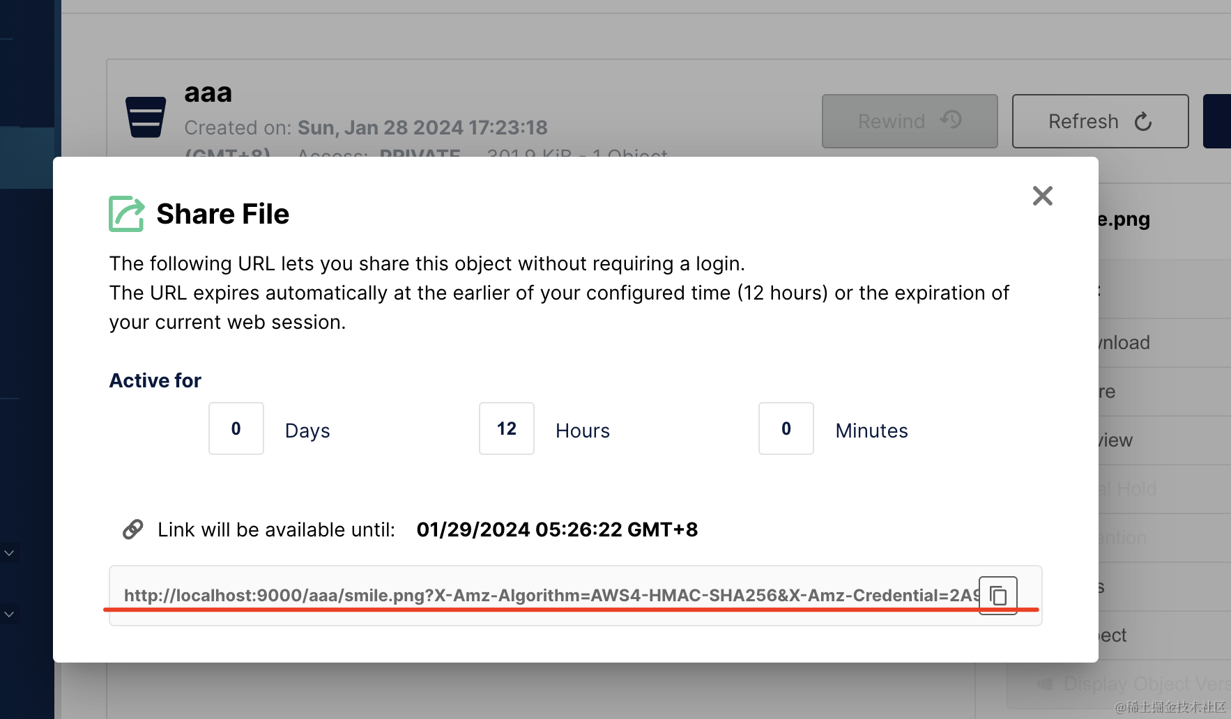 点击 share 就可以看到这个文件的 url: