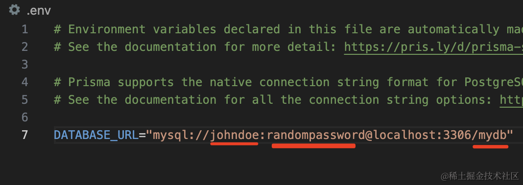 而 .env 文件里存储着连接信息: