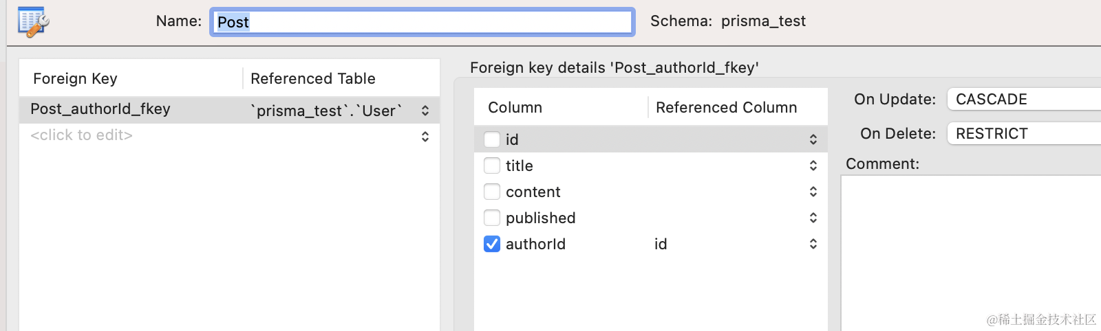 @relation 是指定多对一的关联关系,通过 authorId 关联 User 的 id