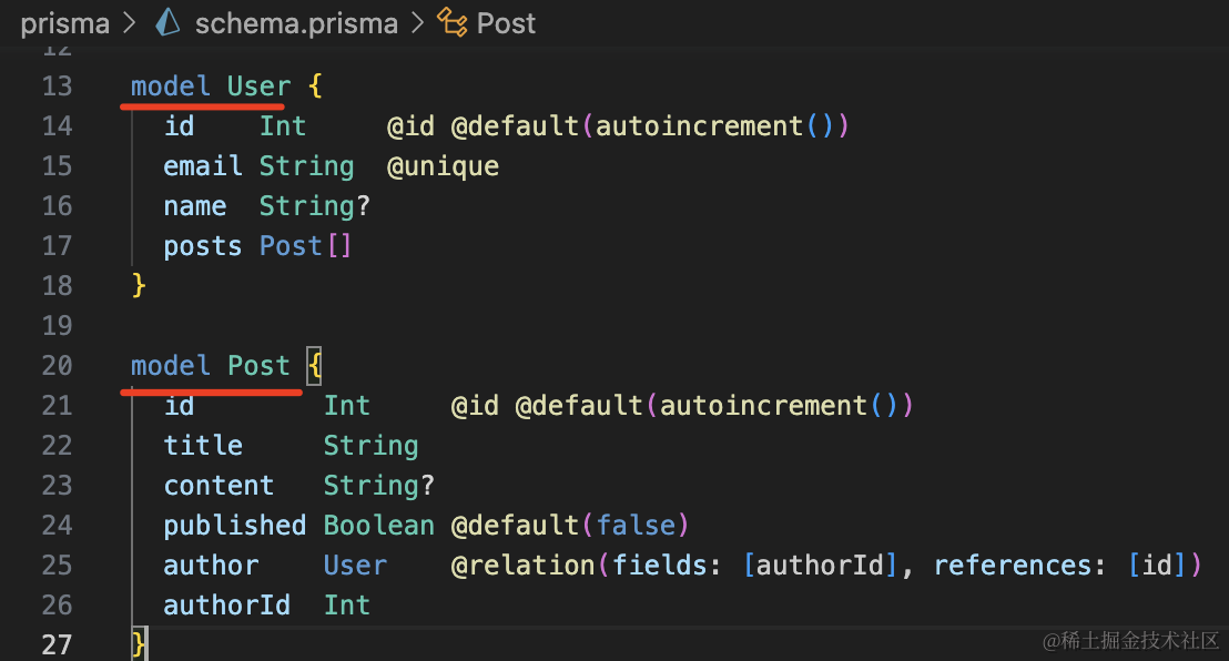 @default(autoincrement()) 是指定默认值是自增的数字