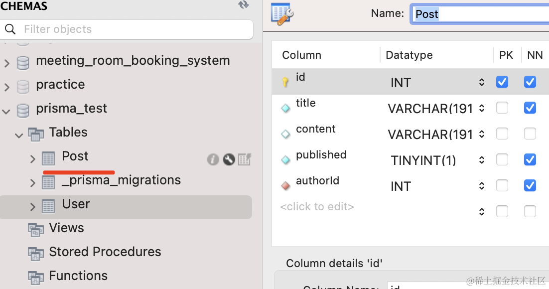 在 mysql workbench 里可以看到生成了 2 个表: