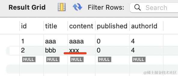 test3();更新 id 为 2 的 post 的内容为 xxx: