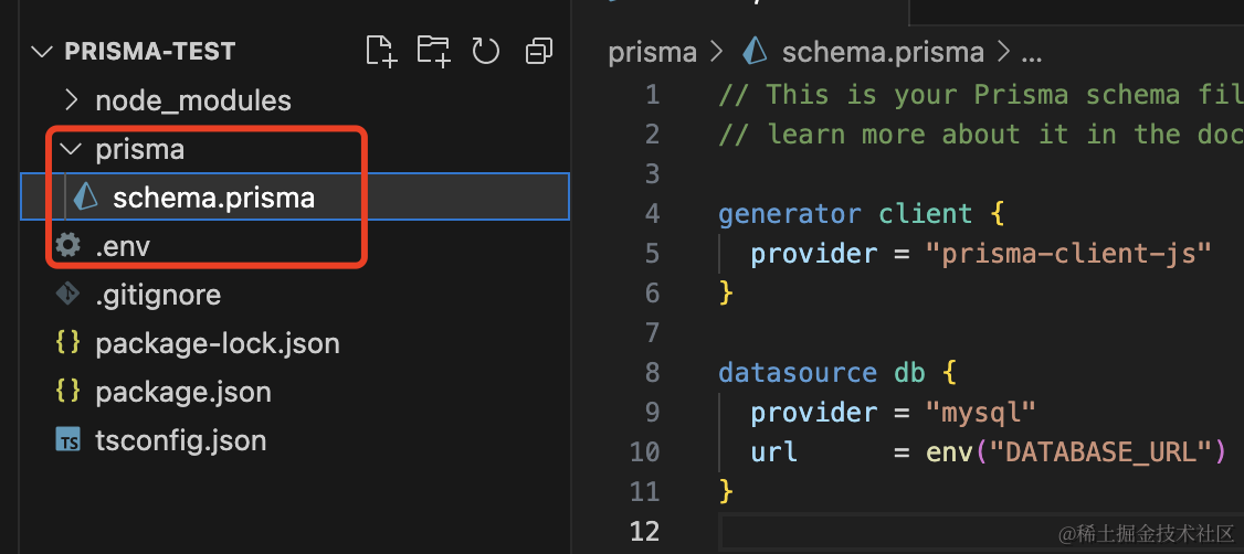 这时你会发现项目目录下多了 schema 文件和 env 文件:
