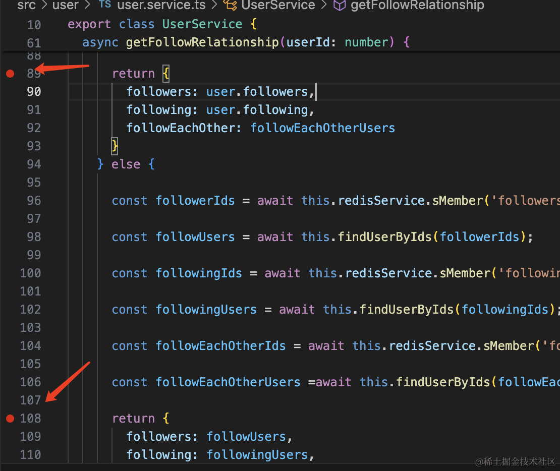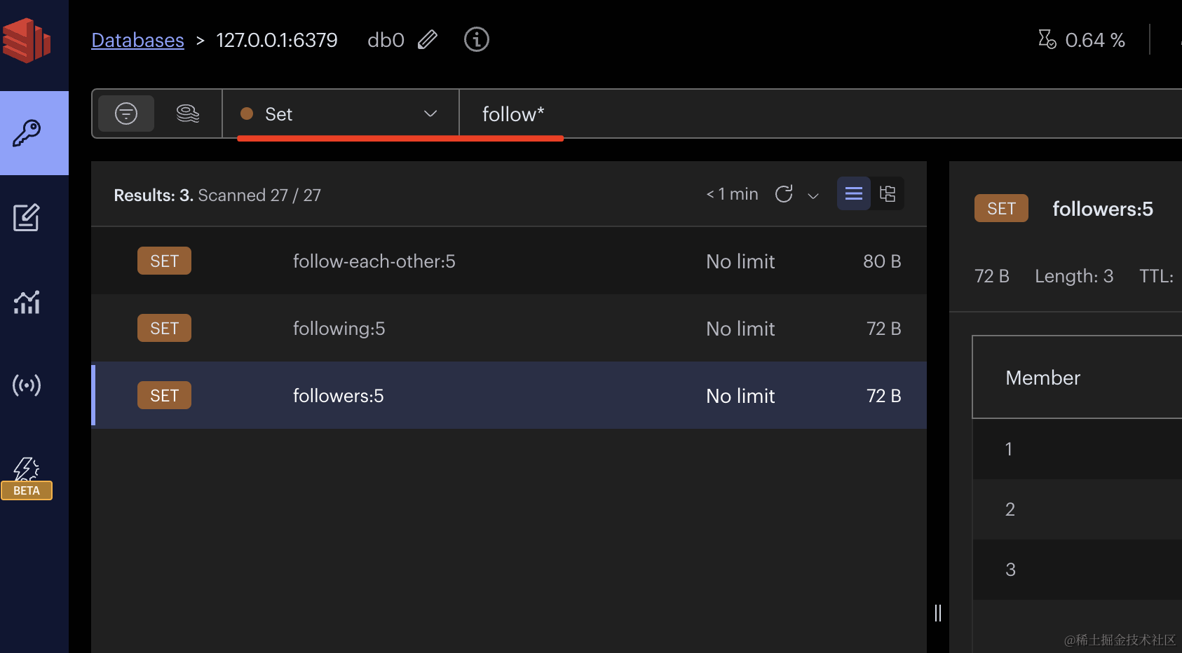 之后查询下 redis,如果有 followers:userId 的 key,就更新下 followers 和 follow-each-other 集合。