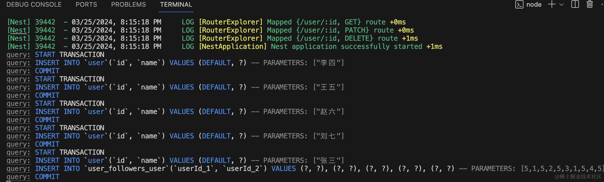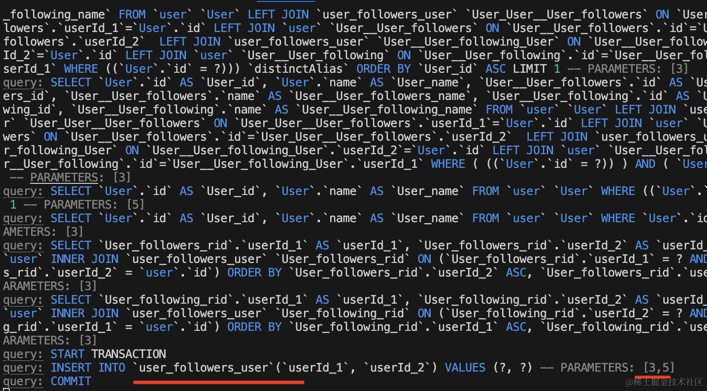 在 mysql 里用中间表来存储 user 和 user 的关系,在 TypeORM 里用 @ManyToMany 映射。