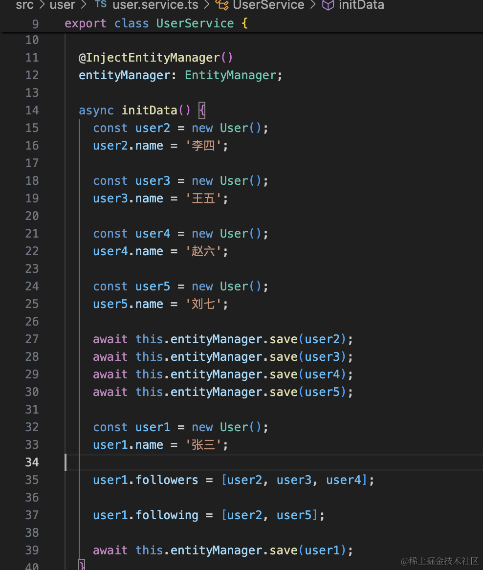 }先查询出 user 的数据,在 followers 添加 user2,然后 save 保存到数据库。