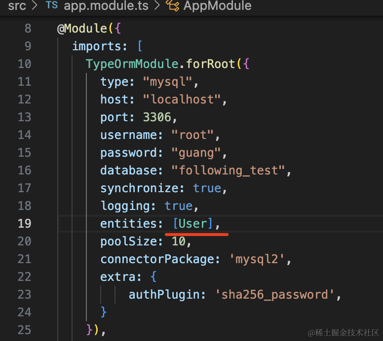npm install --save @nestjs/typeorm typeorm mysql2在 app.module.ts 引入下 TypeOrmModule: