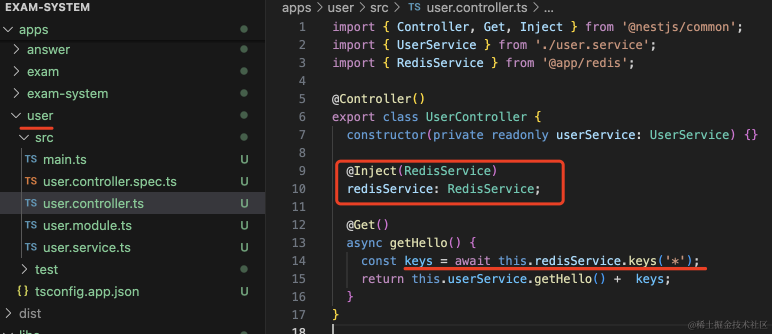 }然后分别在 user 和 exam 的 service 里用一下: