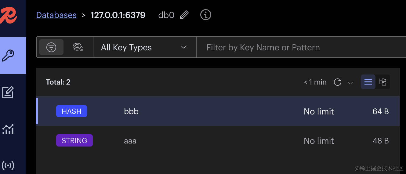 }把 redis 的容器跑起来,去 RedisInsight 里看下: