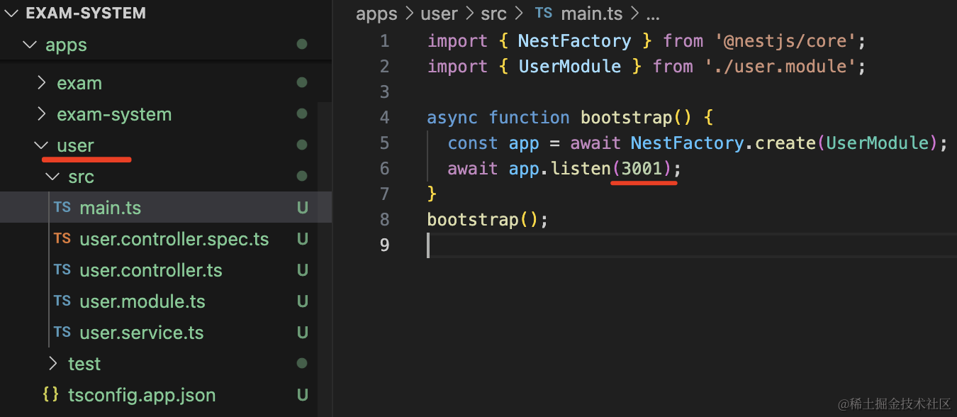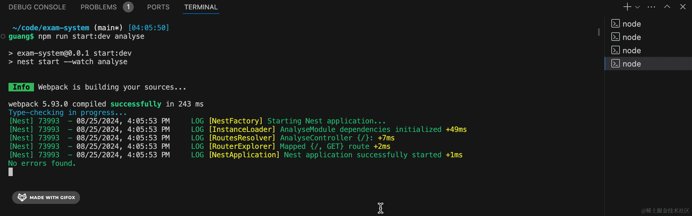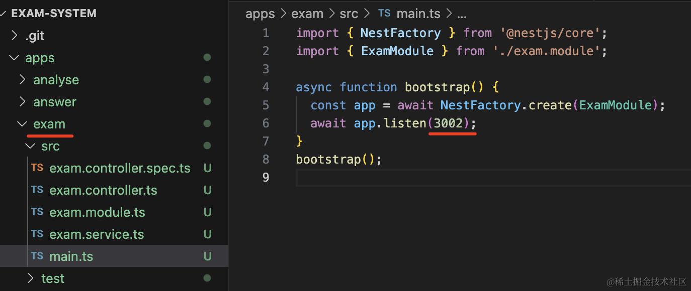 npm run start:dev exam试一下: