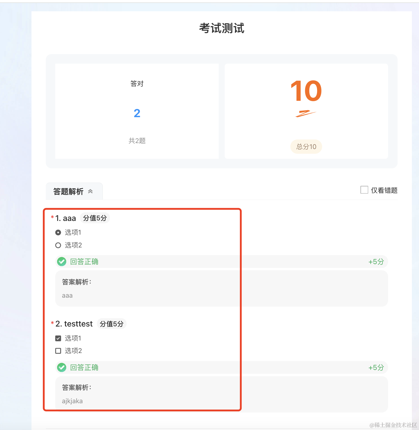 答题结果也是用 json 保存的。