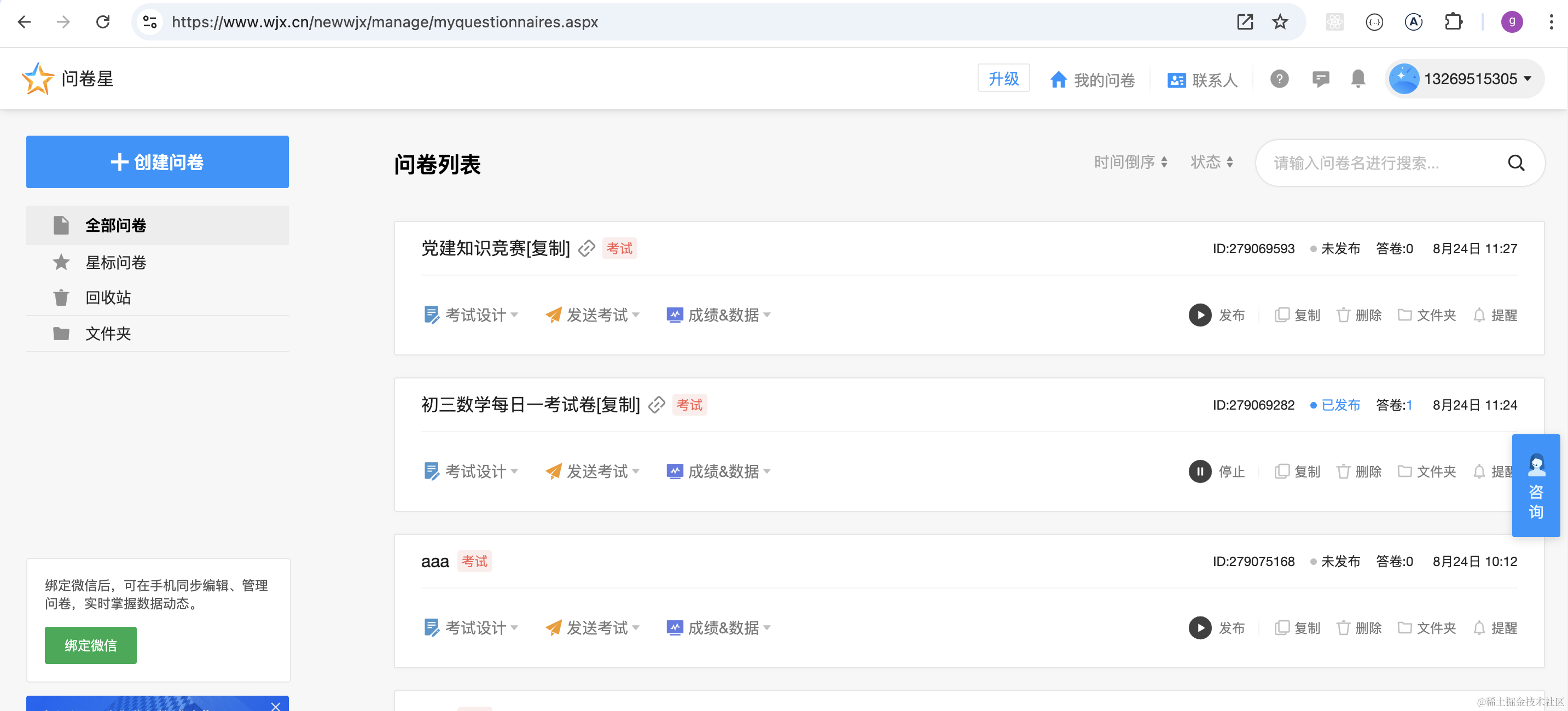 然后实现了考试微服务的接口,包括考试列表、考试创建、考试删除、发布考试、保存试卷内容的接口。
