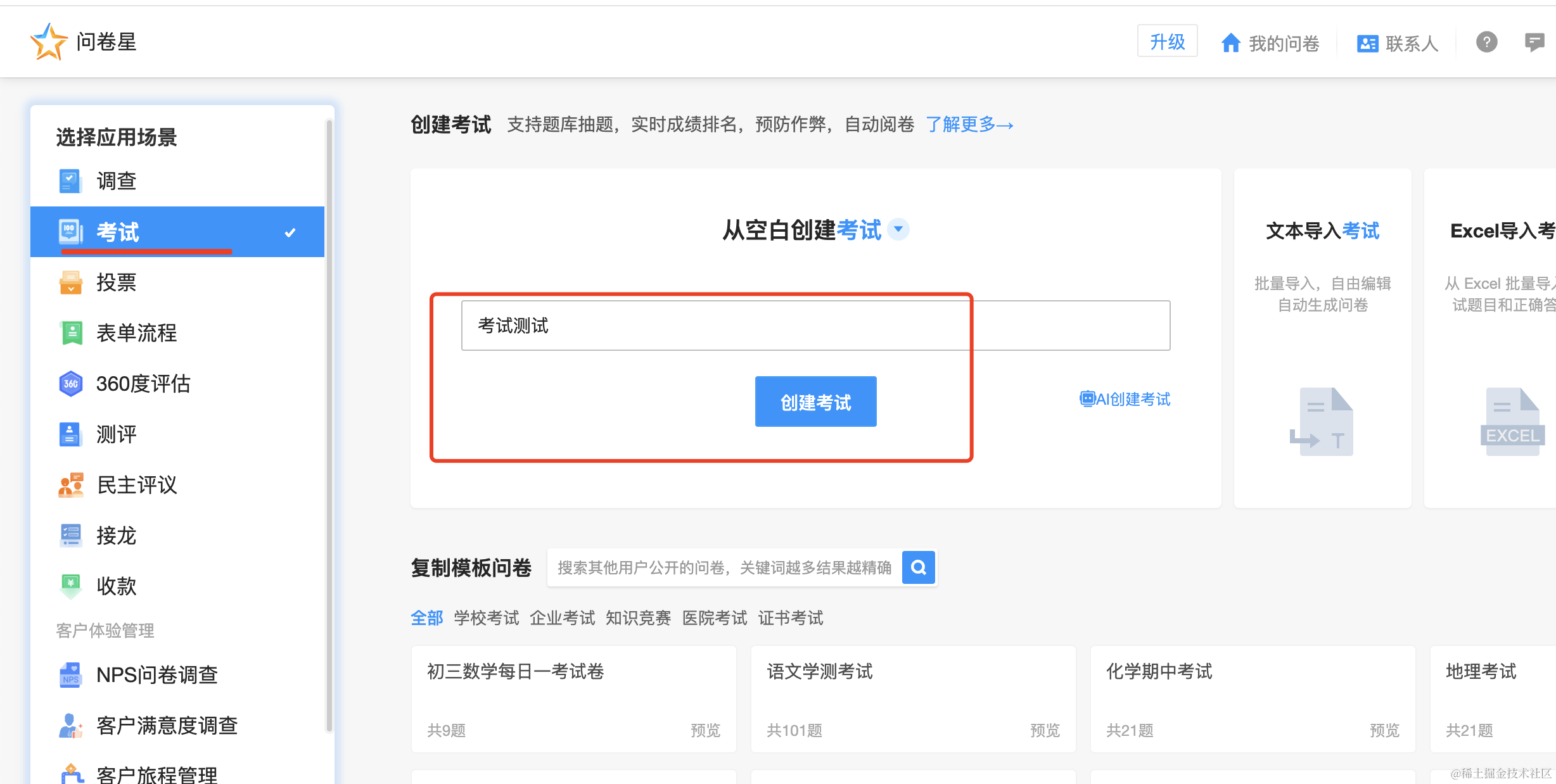 整体是模仿问卷星的流程,从创建考试、考试编辑器、答卷、自动判分、到排行榜等,流程比较完整。