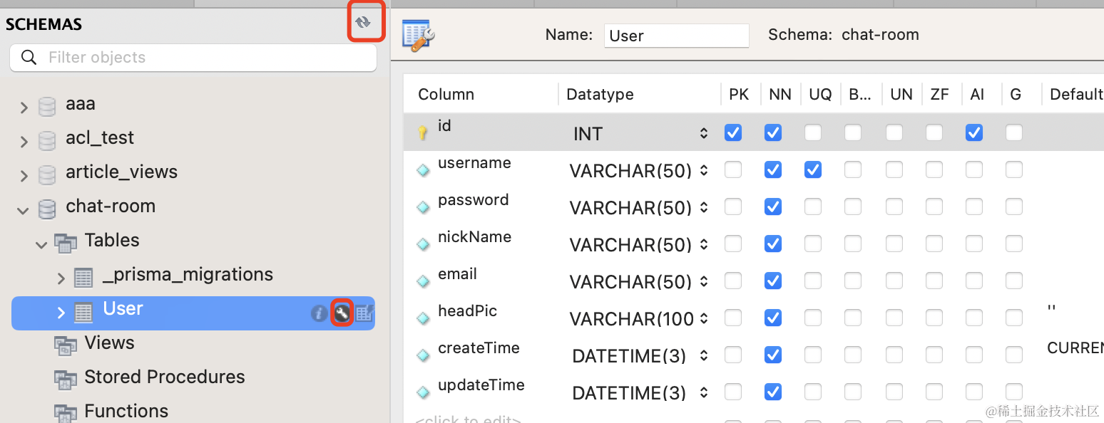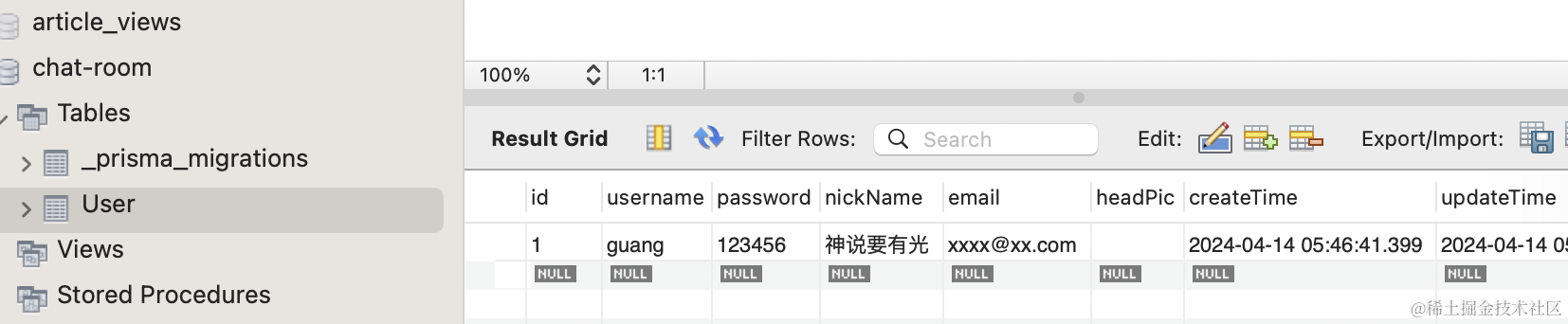 DATABASE_URL="mysql://root:你的密码@localhost:3306/chat-room"并且修改下 schema 里的 datasource 部分: