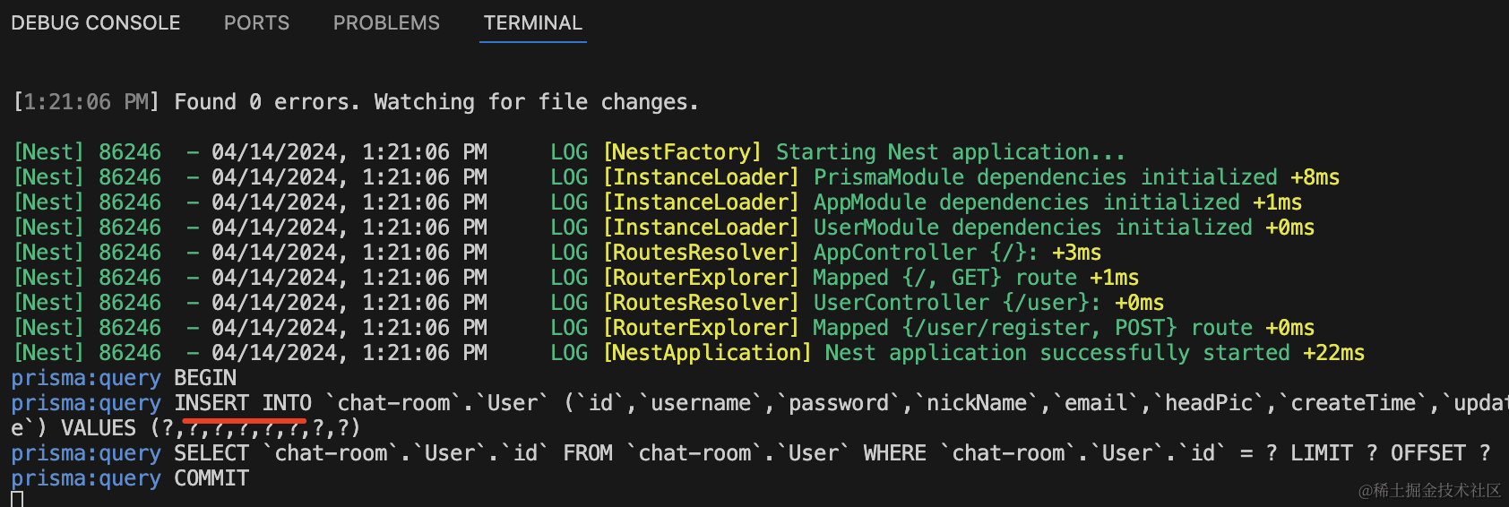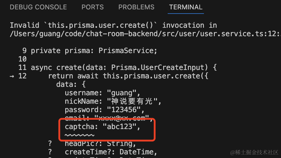 }先检查验证码是否正确,如果正确的话,检查用户是否存在,然后用 prismaService.create 插入数据。