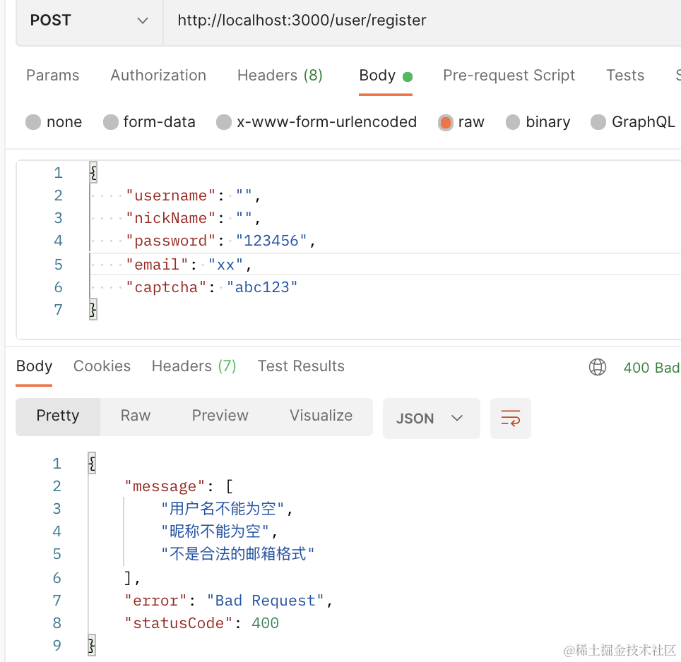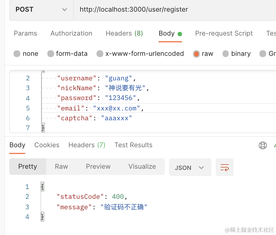 throw new HttpException('验证码不正确', HttpStatus.BAD_REQUEST);