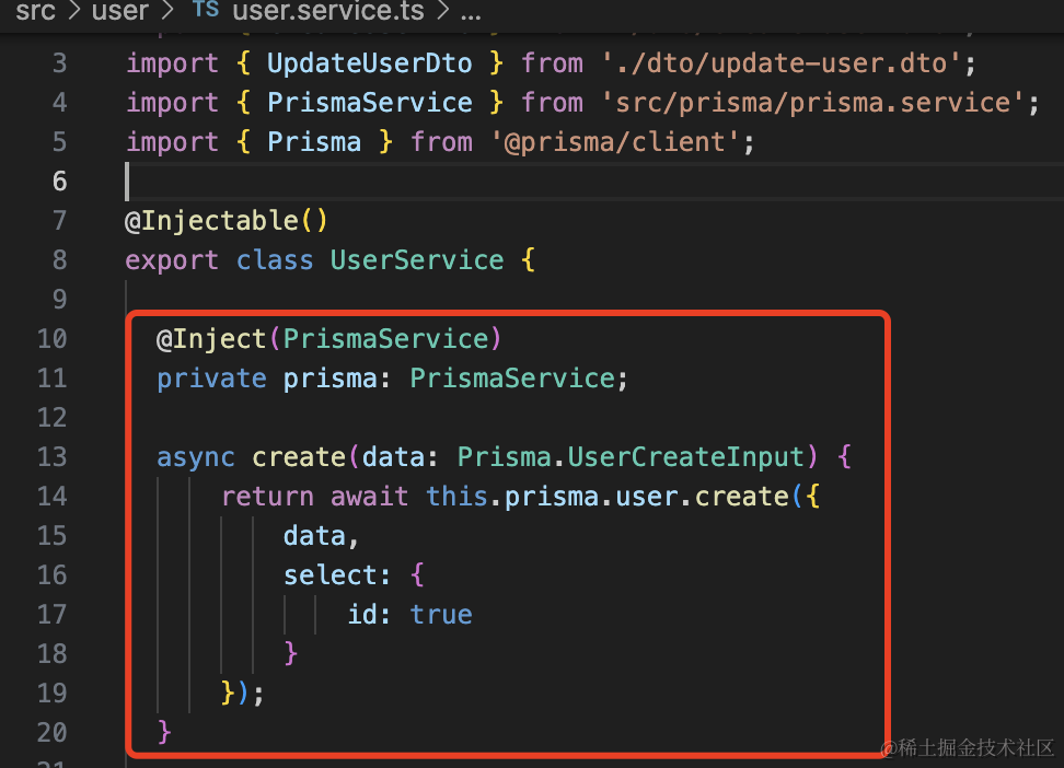 此外,prisma 会生成 client 的代码,我们封装了 PrismaService 来做 CRUD。