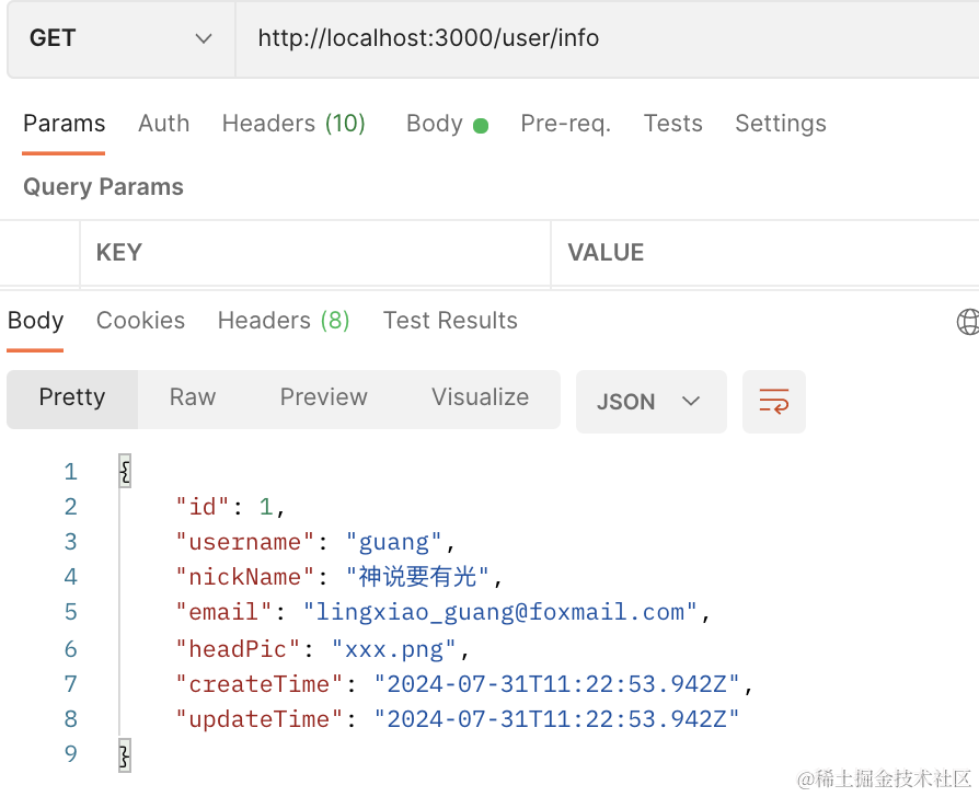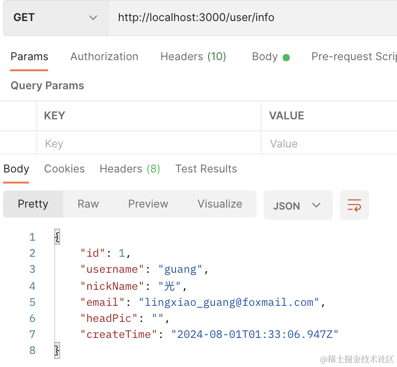 然后带上 token 访问 /user/info