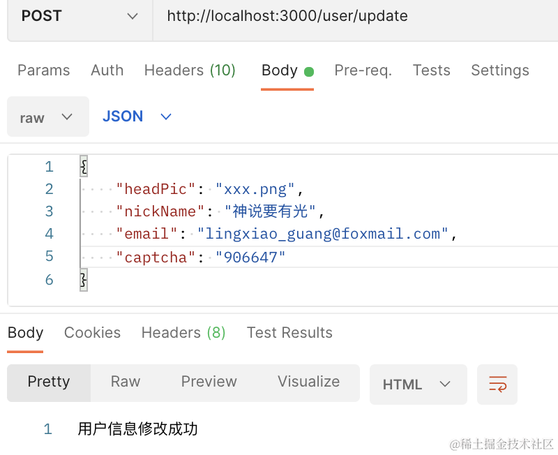 然后再来写下修改个人信息的接口: