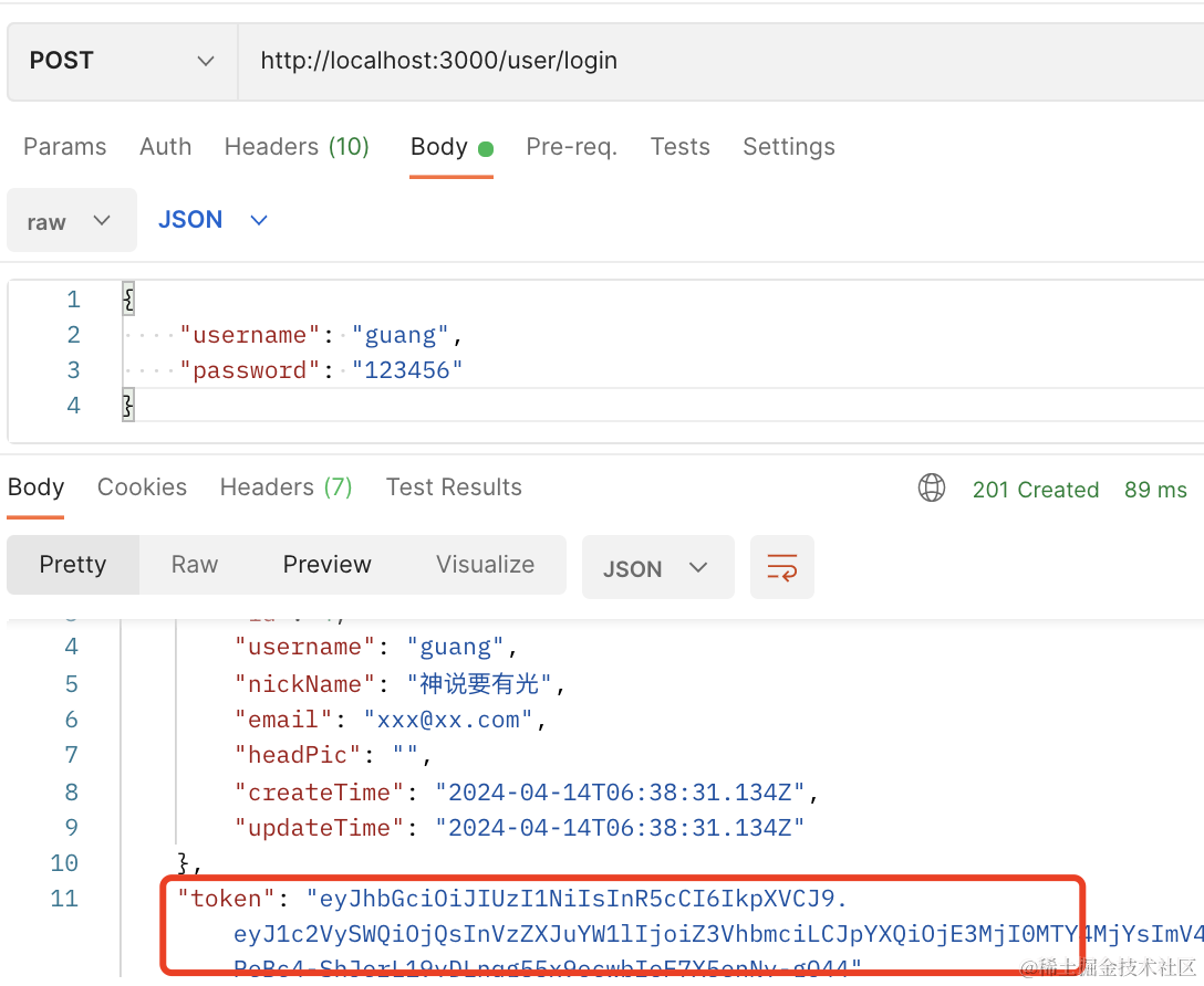 登录,拿到 token。