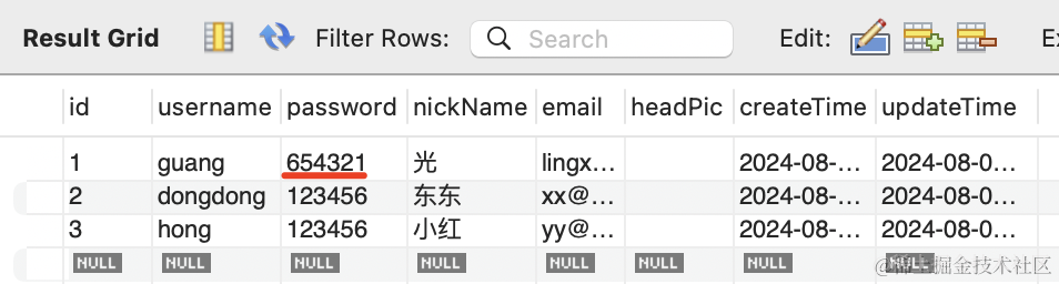 我们为了开发方便没对密码做加密,可以直观看出来密码修改成功了:
