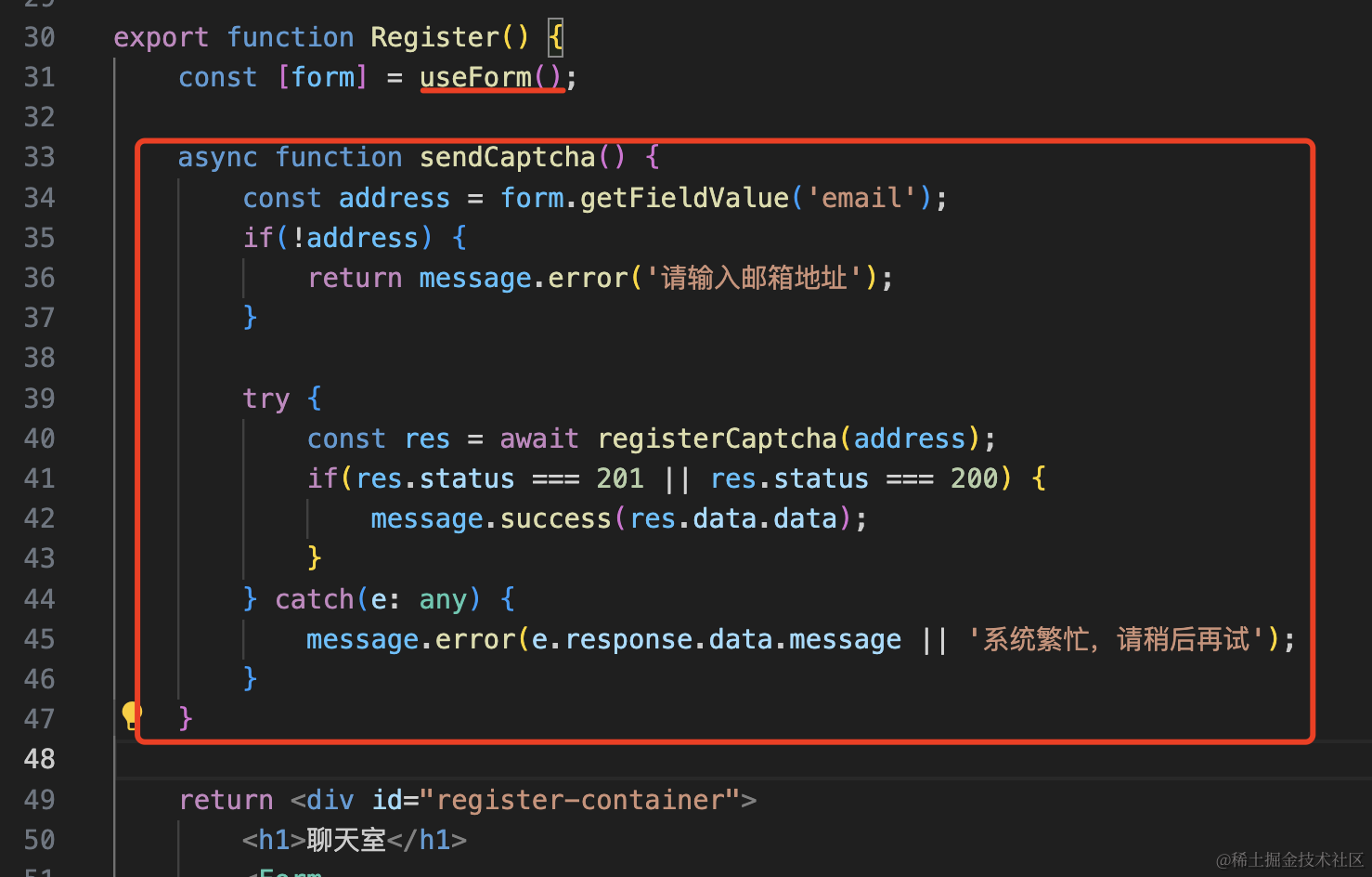 return message.error('请输入邮箱地址');
