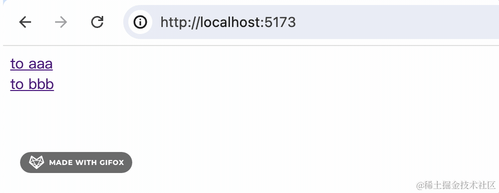 其中,aaa 和 bbb 是 / 的子路由,渲染在 Layout 组件的 Outlet 的地方。