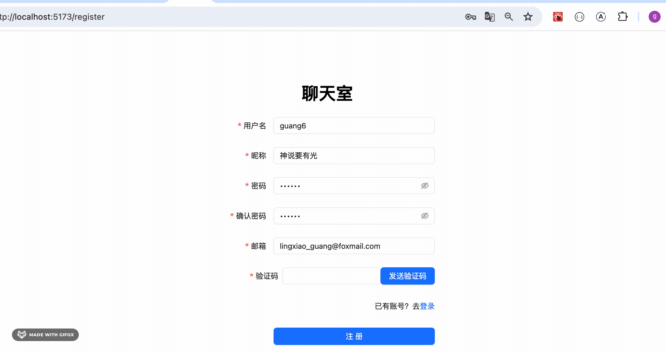 聊天室:登录、注册页面开发