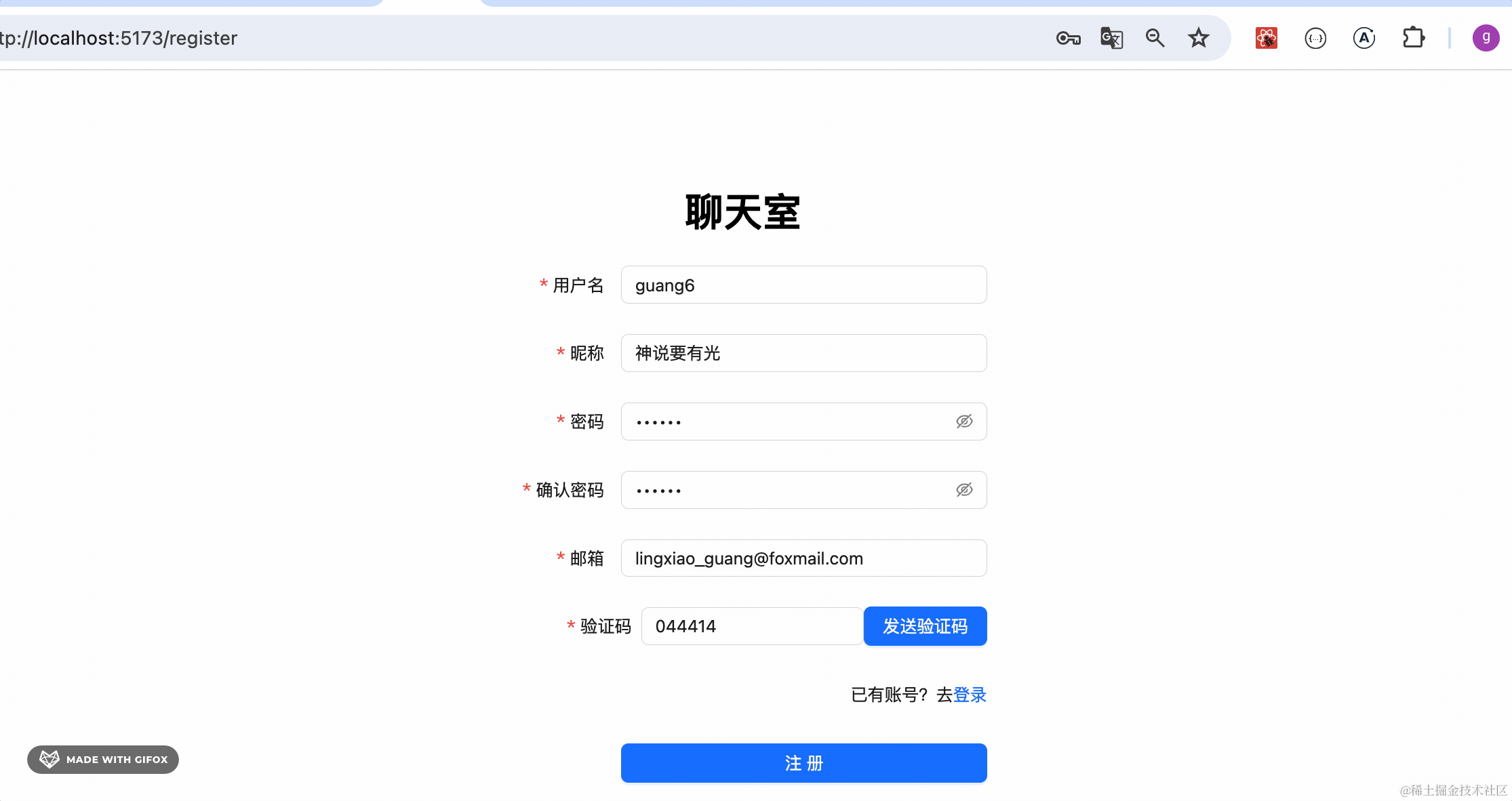 发送邮件验证码正常,注册之后数据库也多了记录,登录成功之后 localStorage 也有了用户信息。