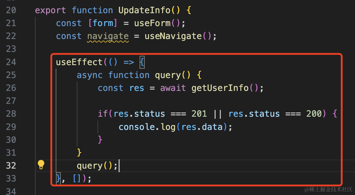}, []);调用 getUserInfo 接口,返回数据后打印下。