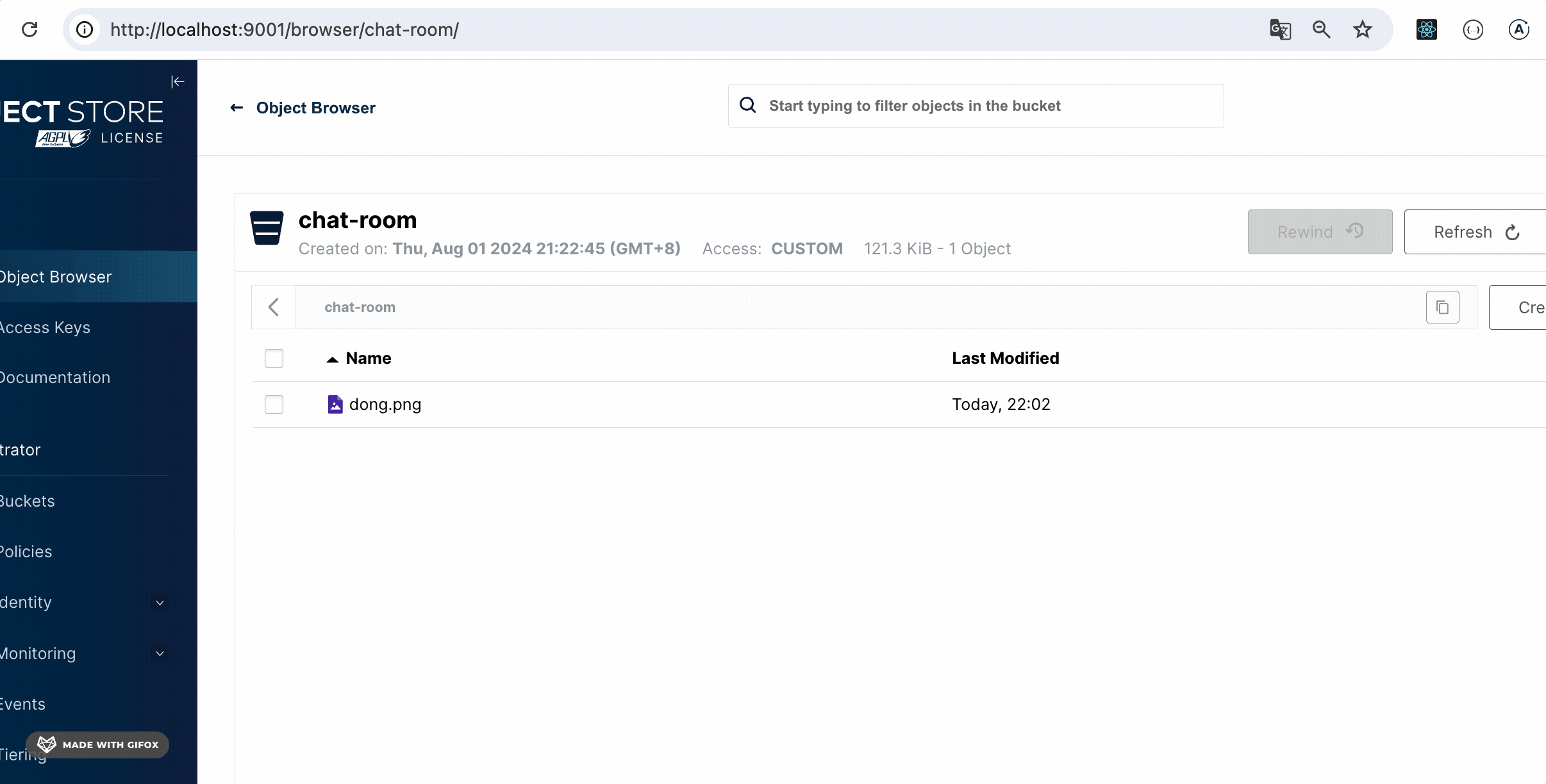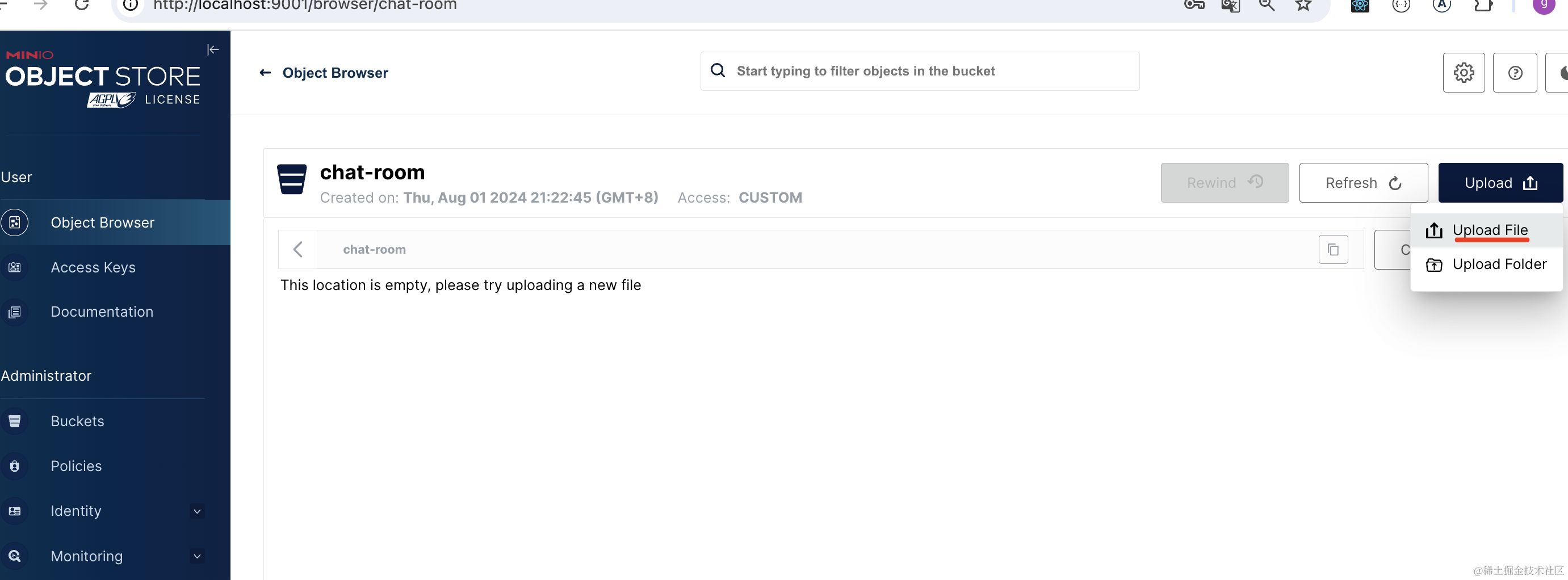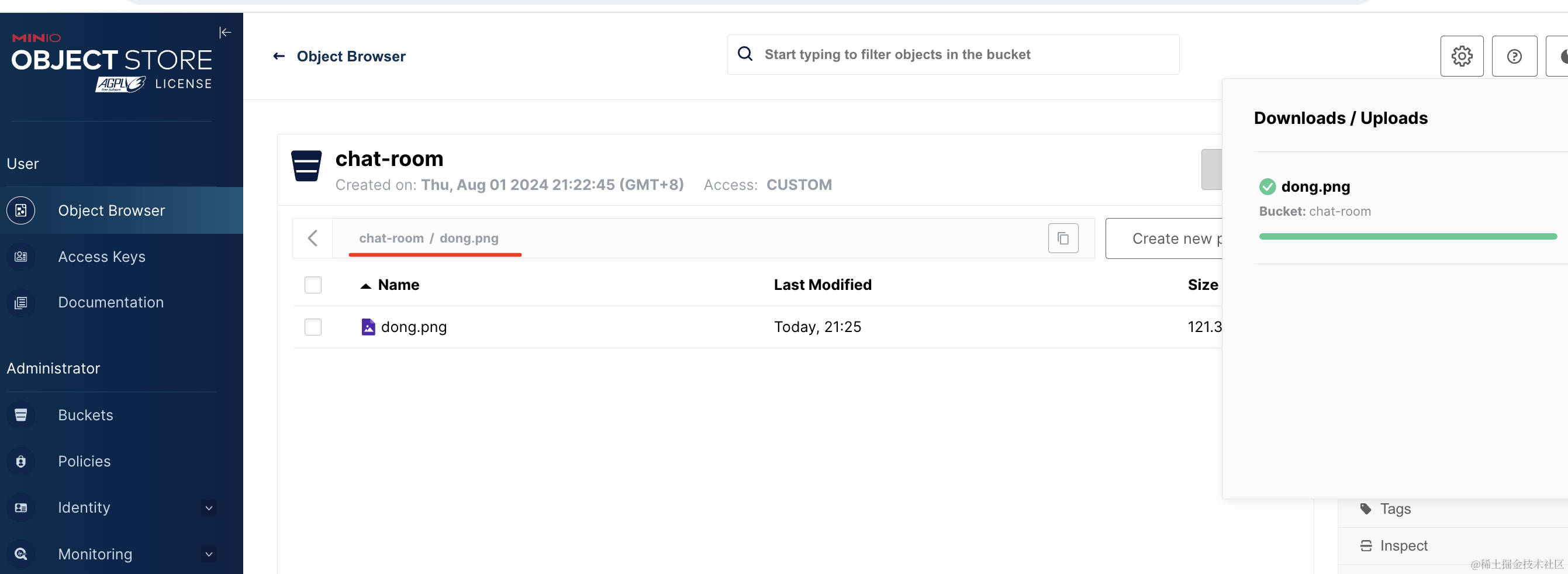 在 minio 管理界面也可以看到这个文件: