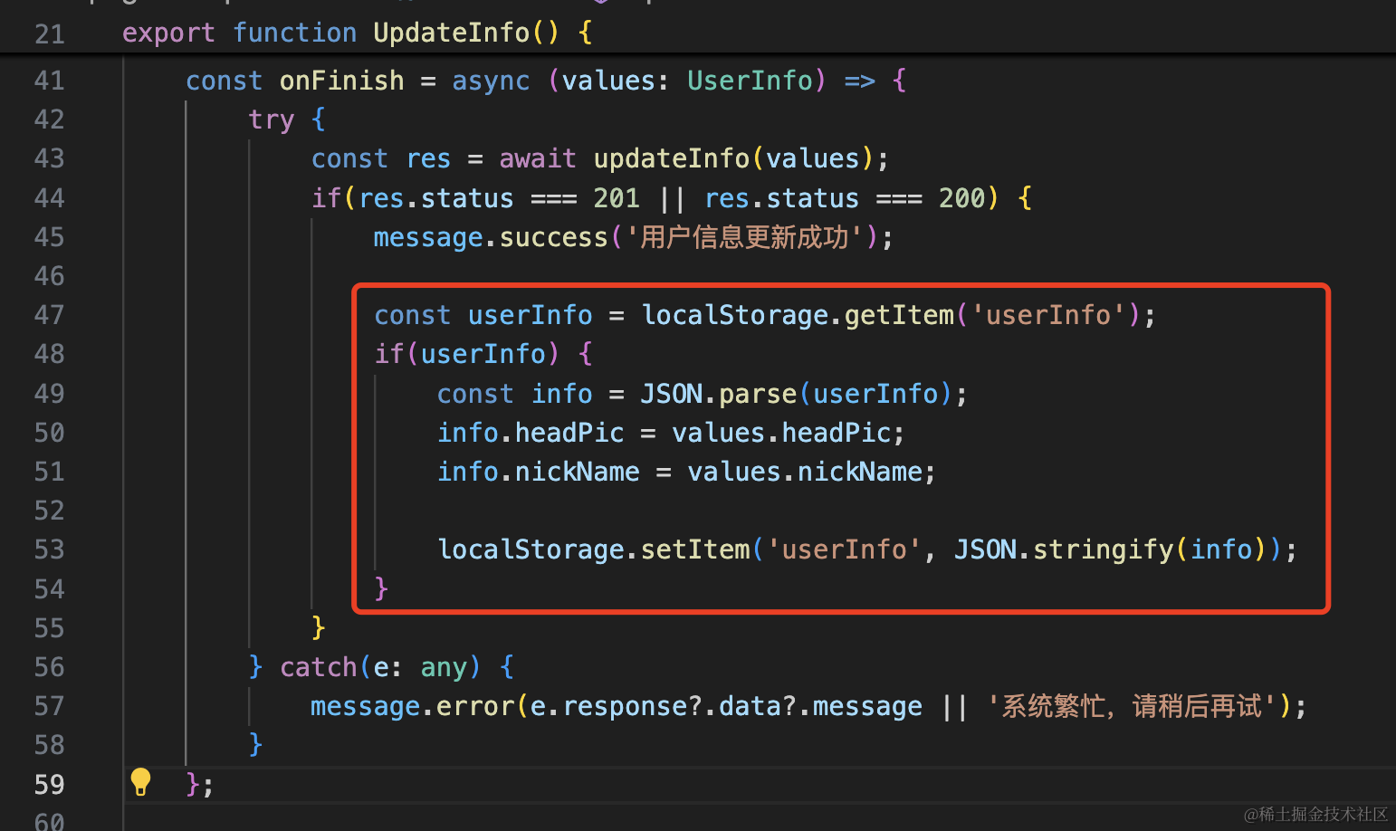 首先,用户信息更新完后,同步修改下 localStorage 里的 userInfo