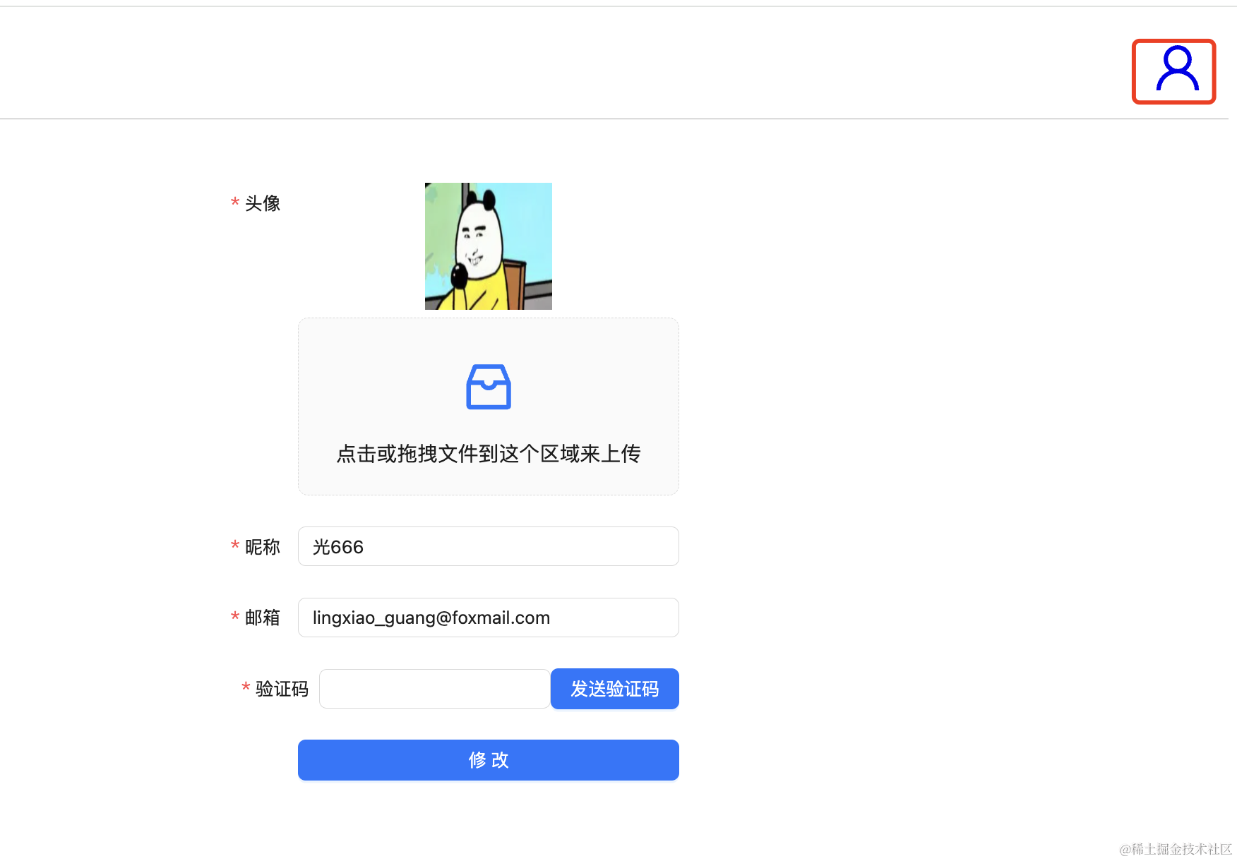 然后右上角的按钮也可以从 localStorage 里取最新的 headPic: