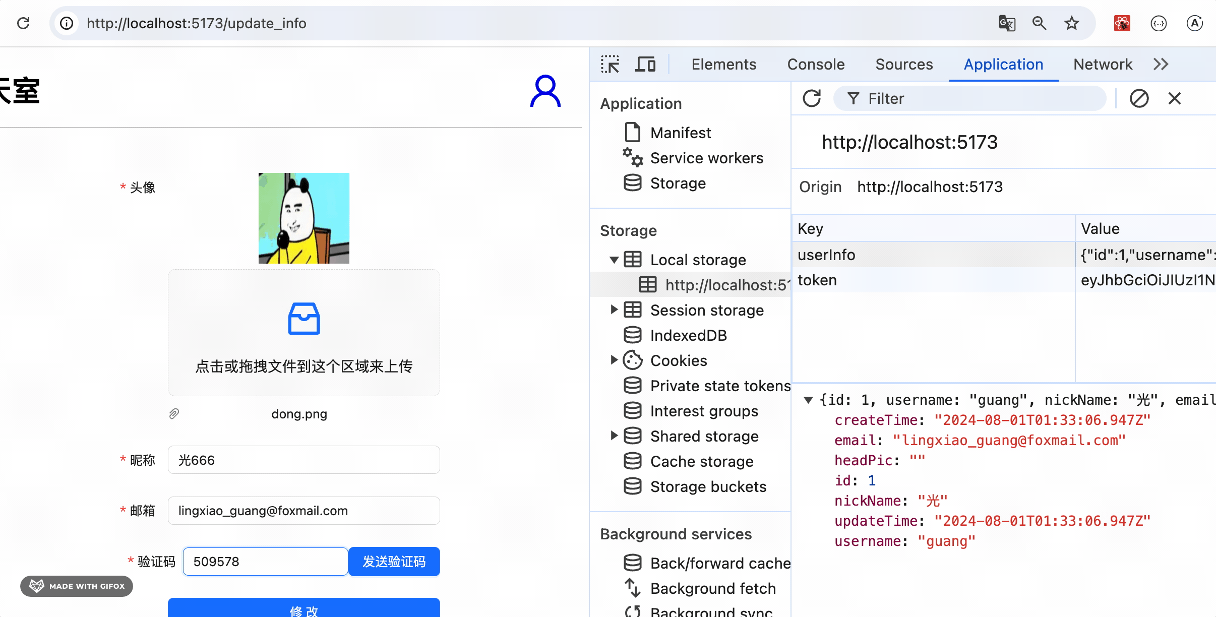 可以看到,点击修改后,localStorage 里的数据也同步更新了。