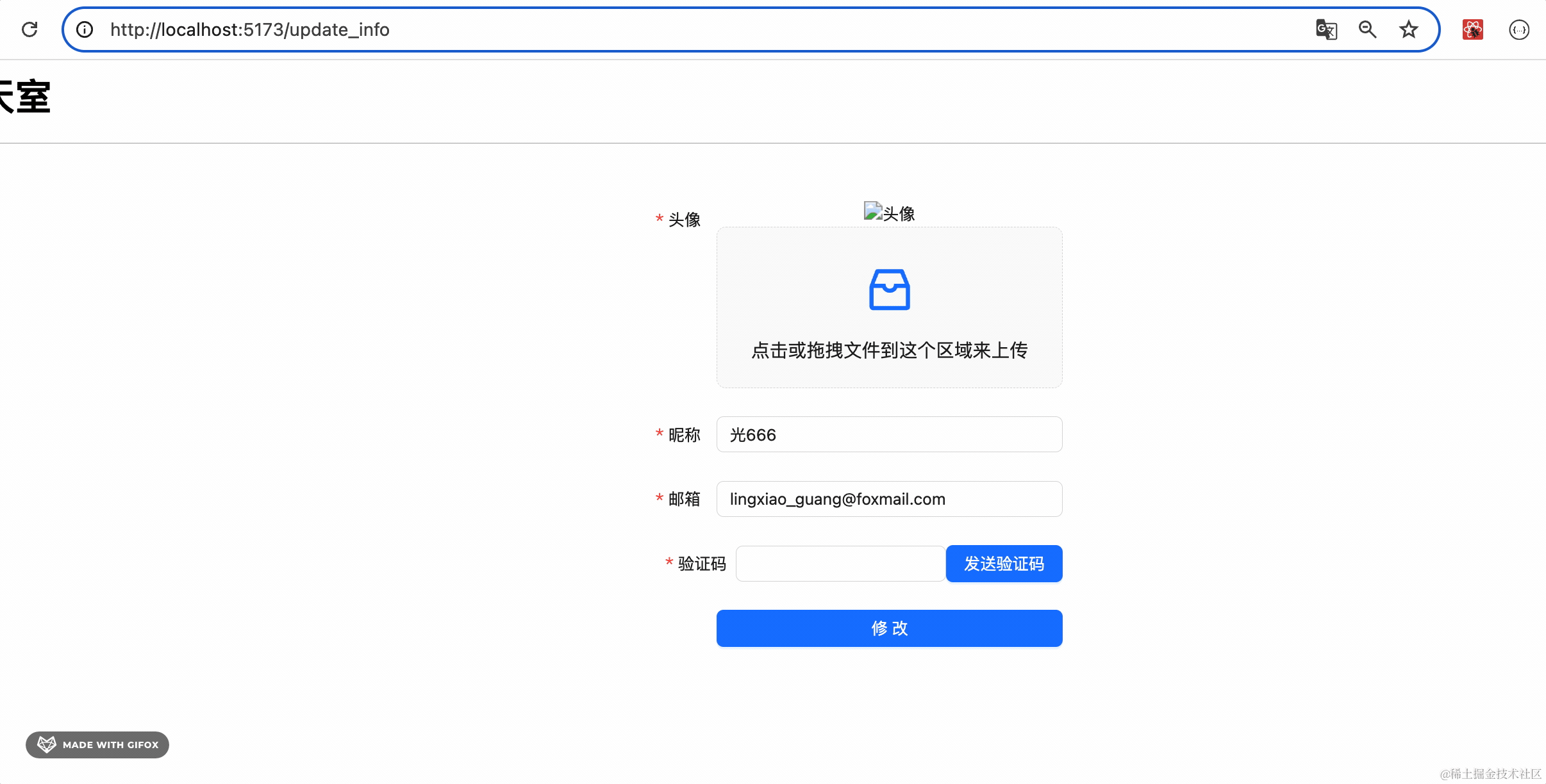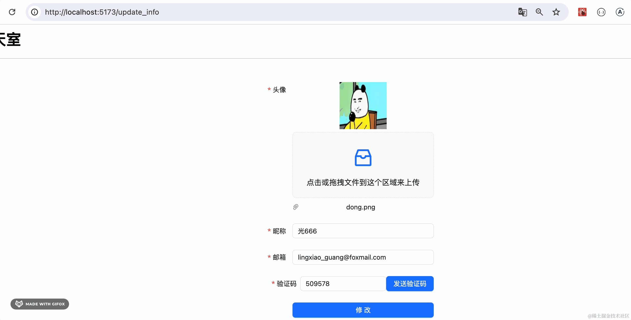 输入验证码,点击修改,会提示更新成功: