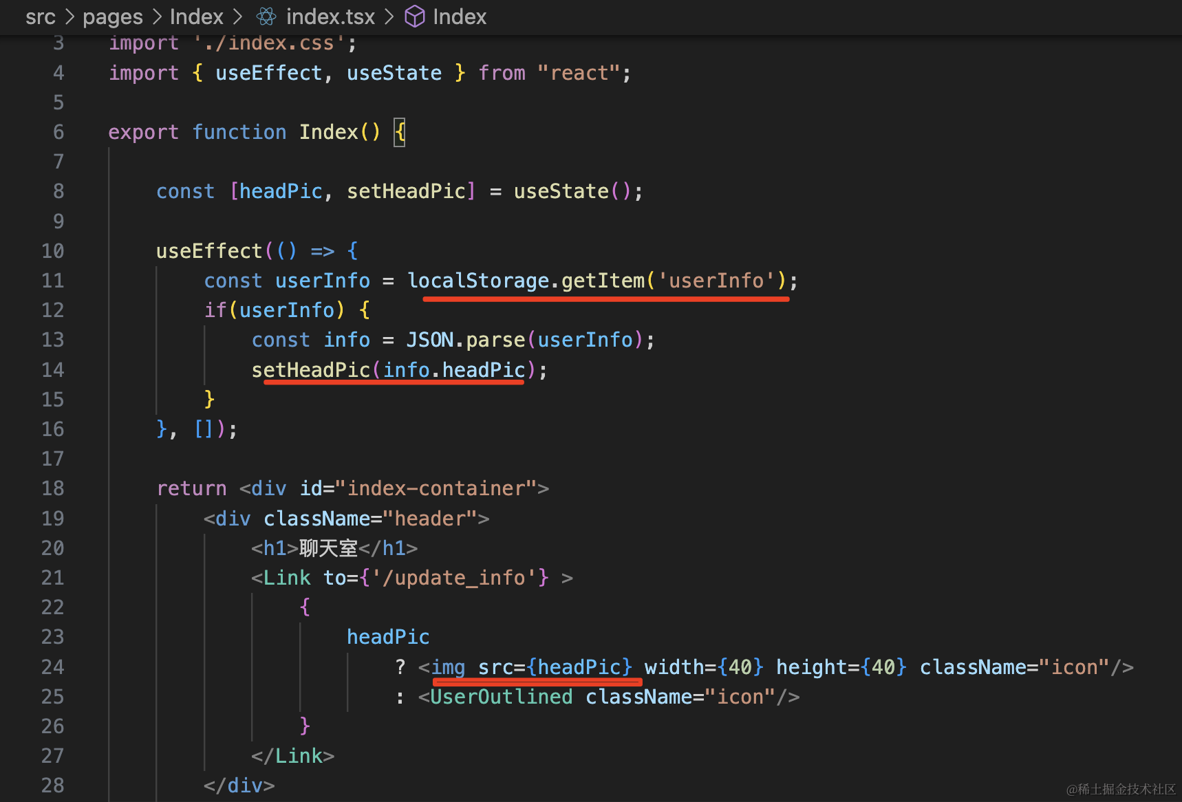 在 useEffect 里读取 localStrage 里的值,调用 setHeadPic。