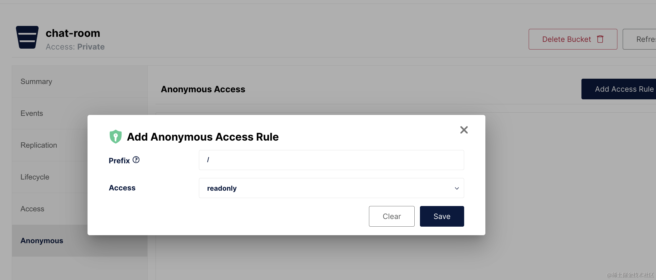 bucketName 就是 chat-rom