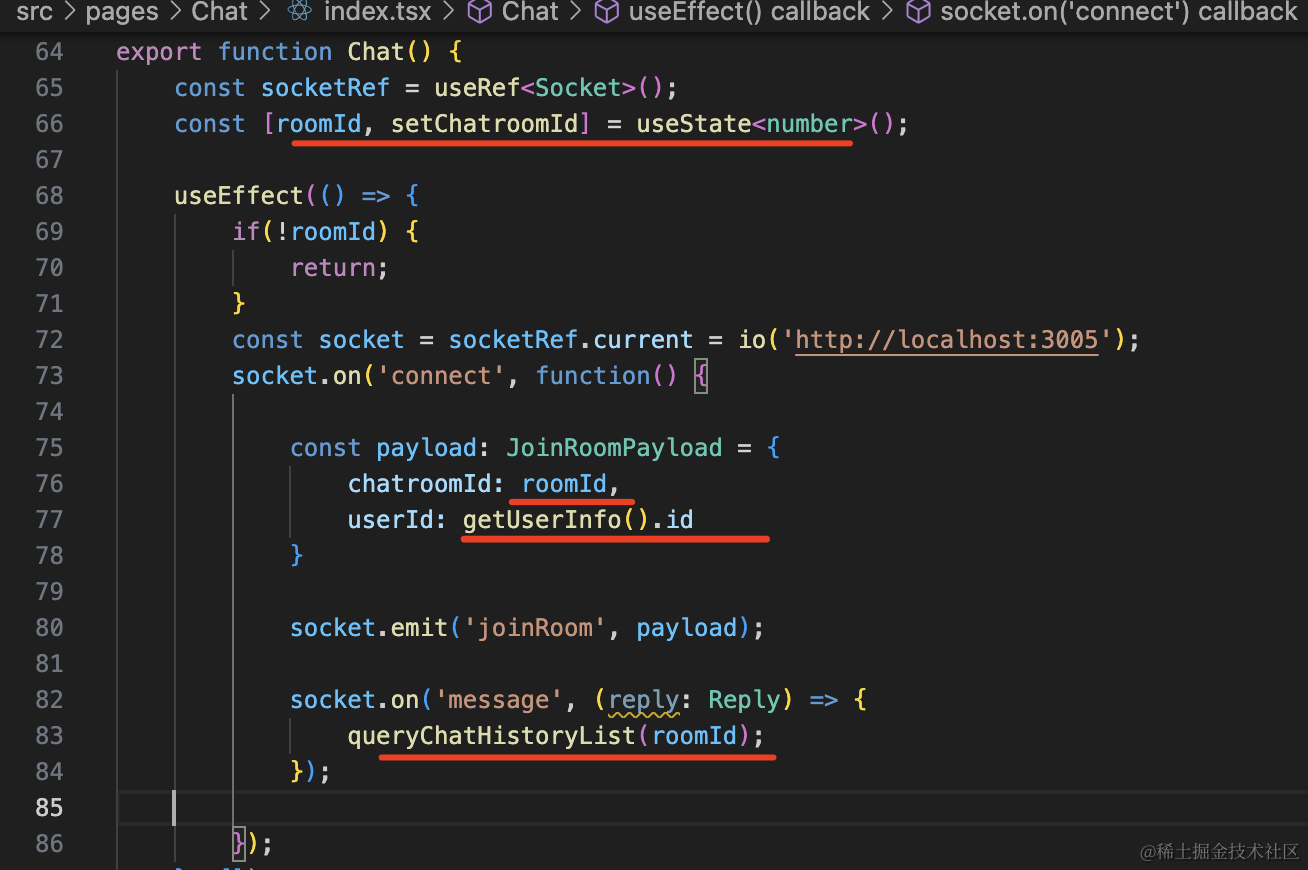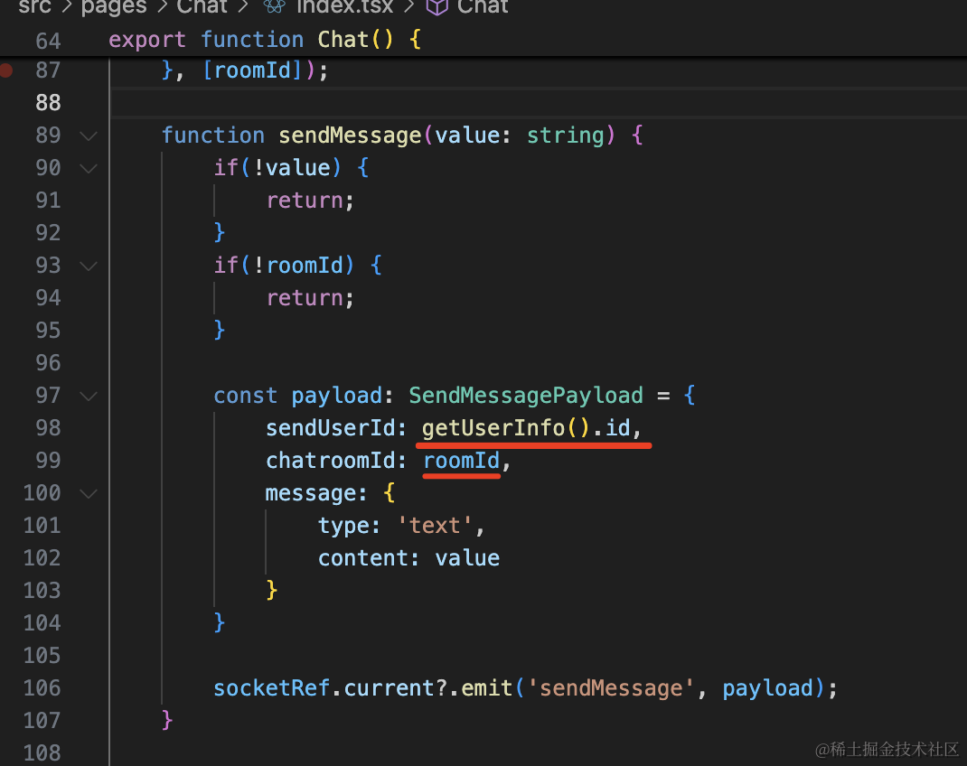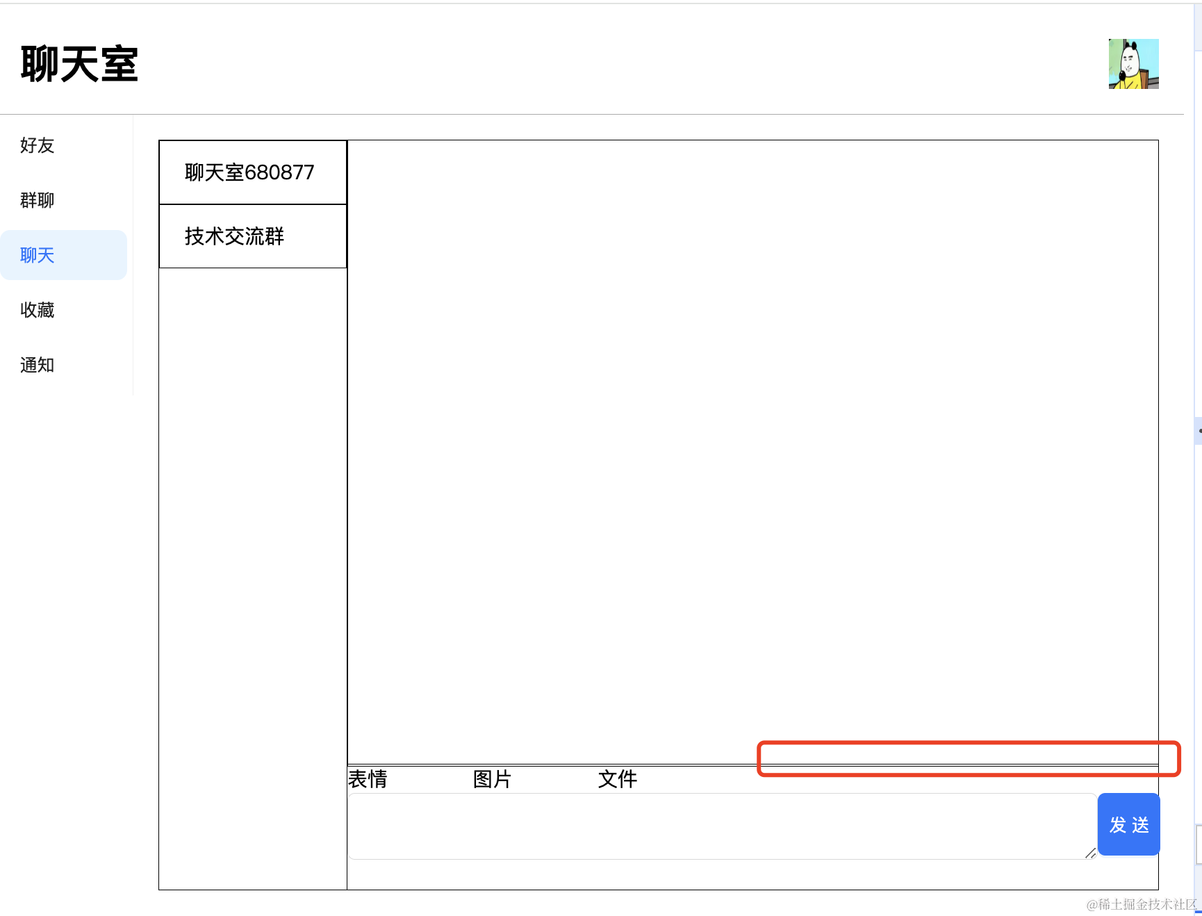 点击发送消息的时候,通过 socket 链接来 emit 消息。