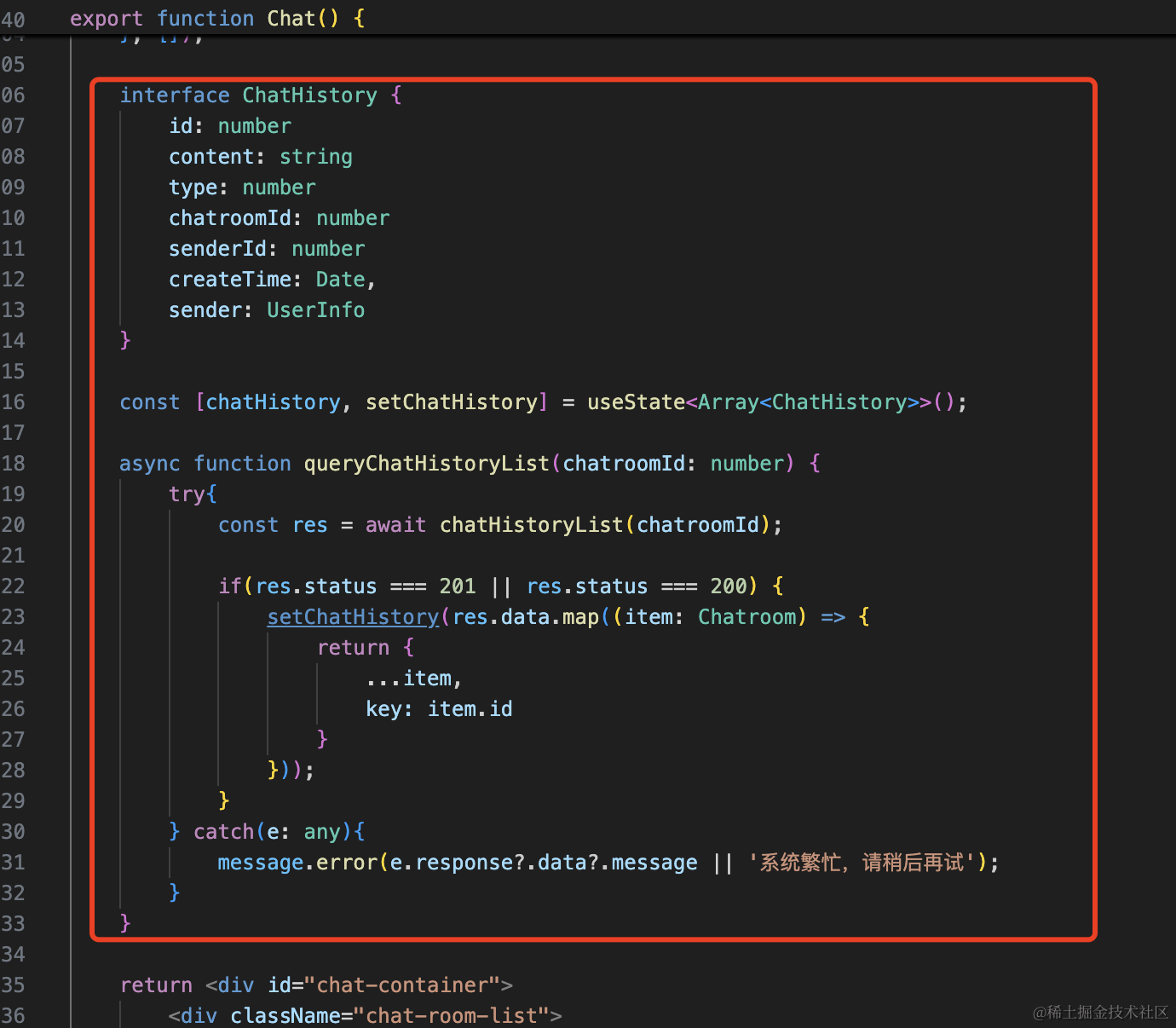 这样,全程只需要查询一次聊天记录,性能好很多。