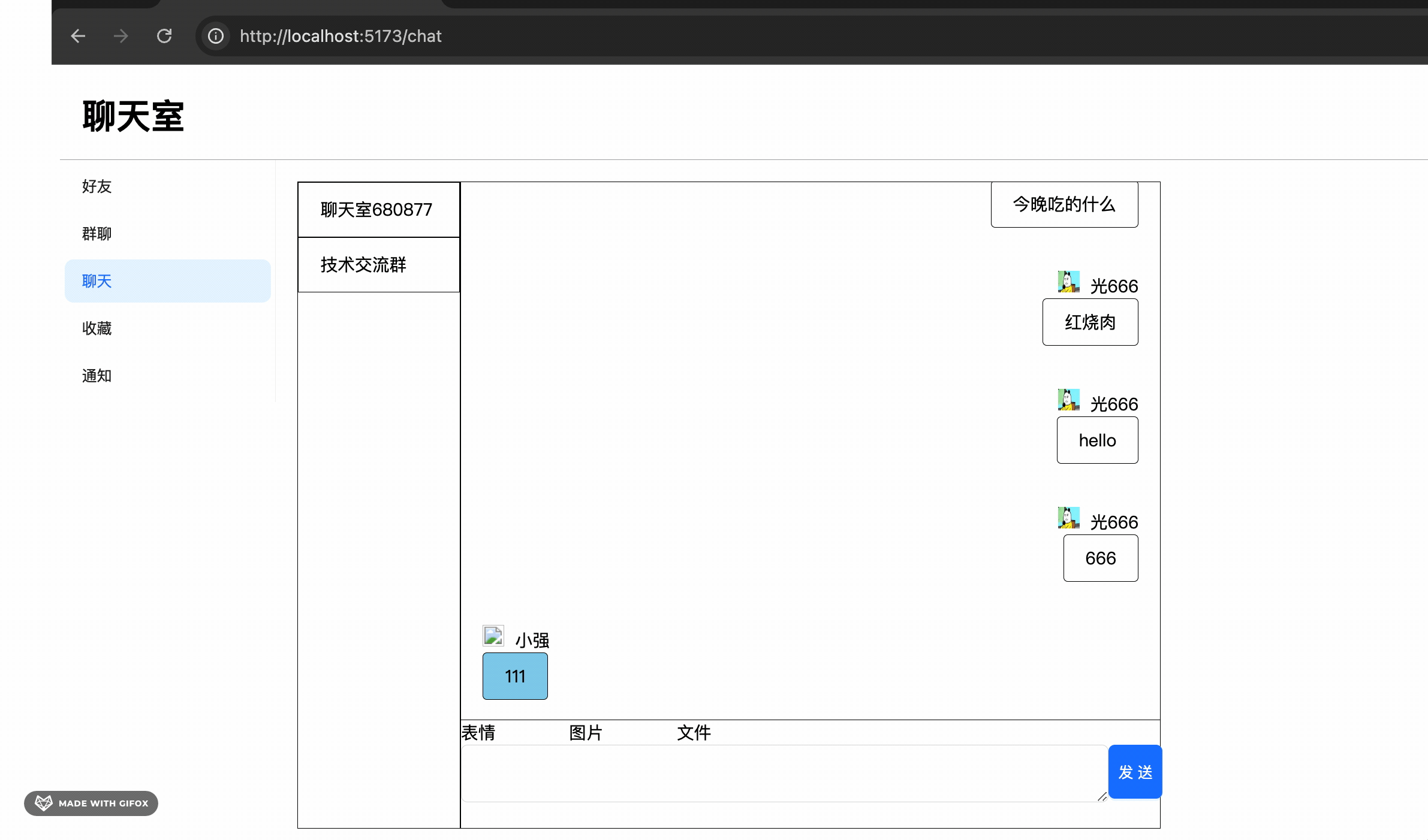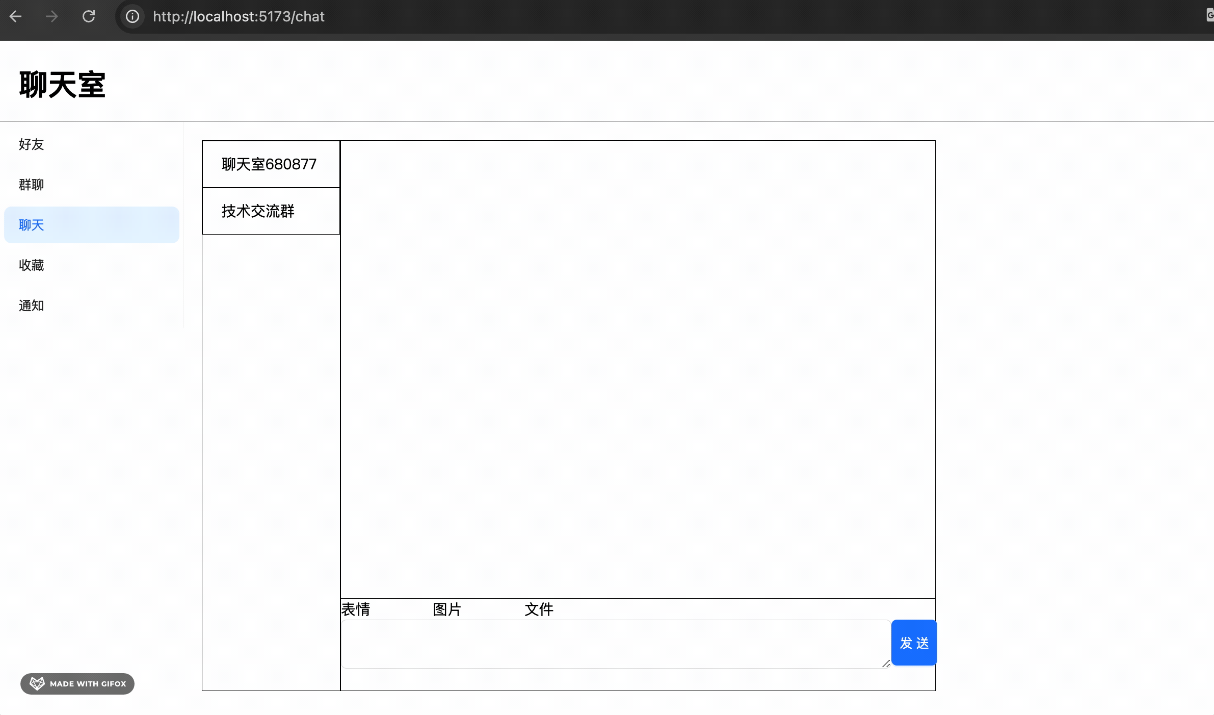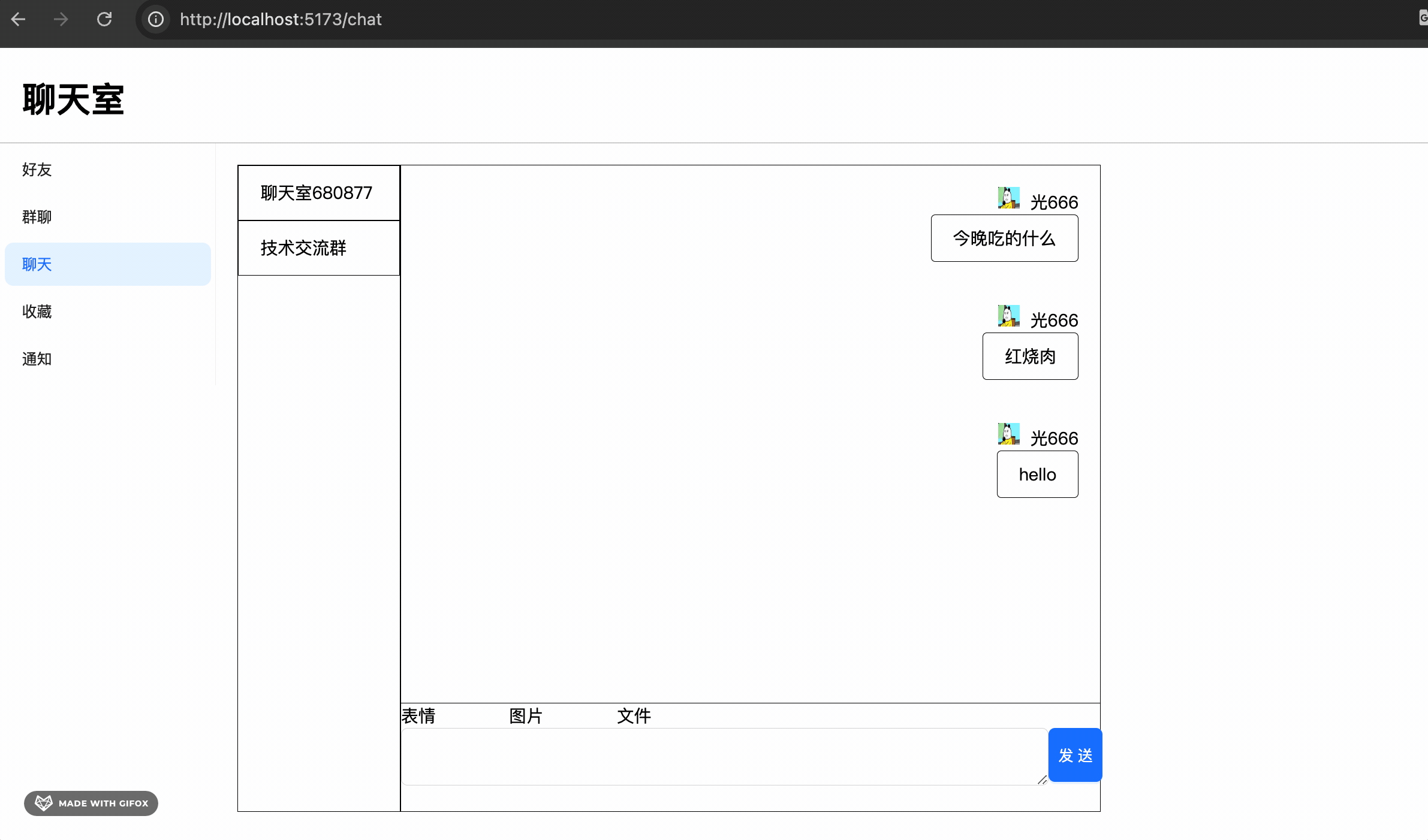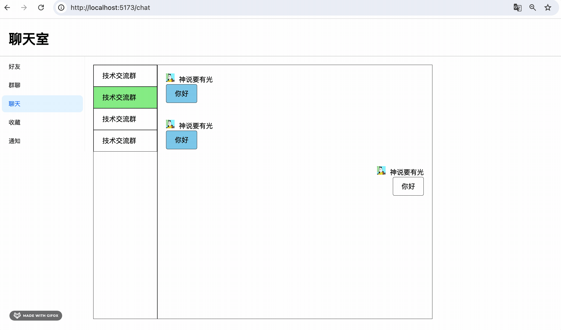 点击左侧切换聊天室,就可以在不同聊天室聊天。