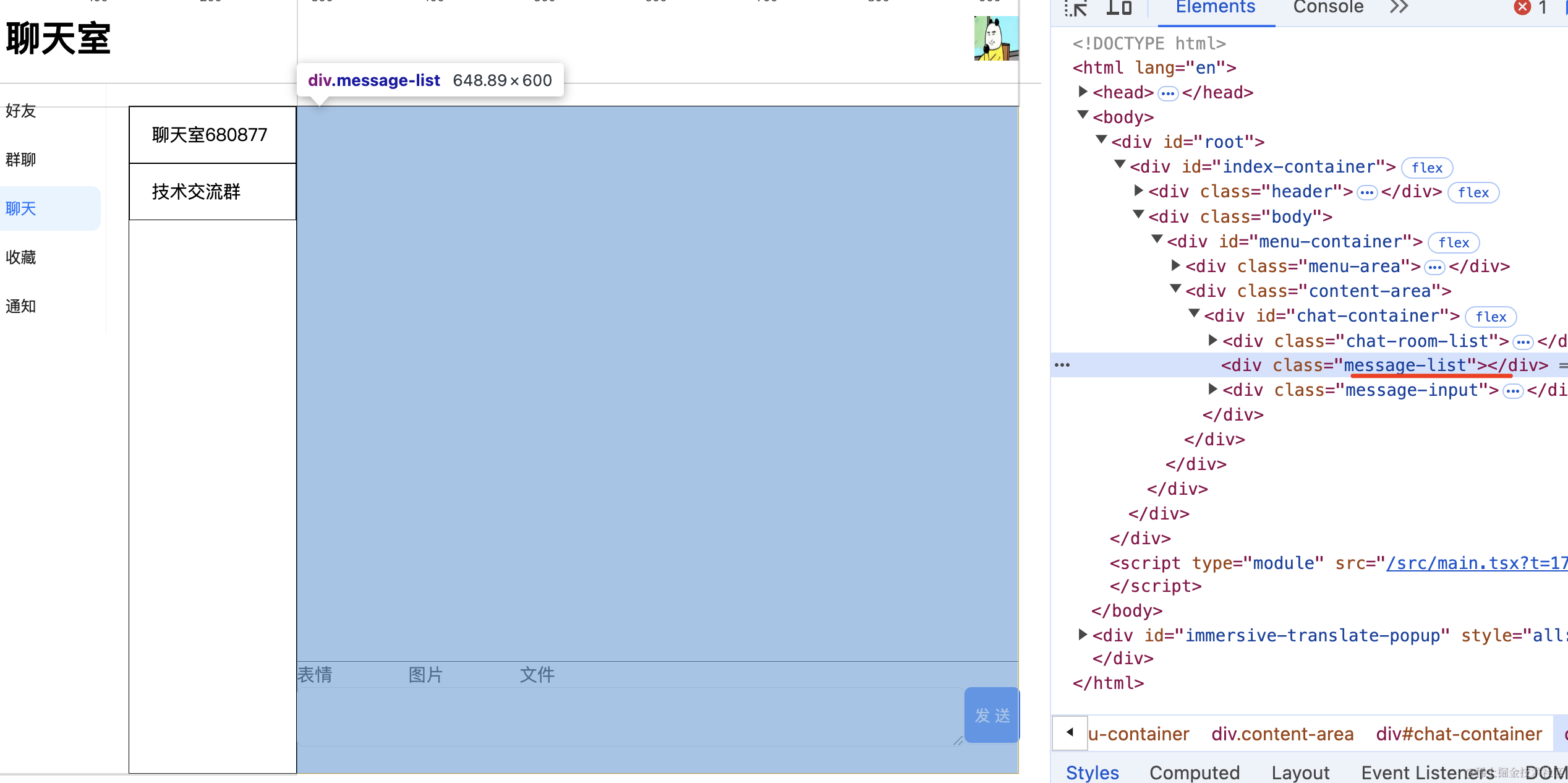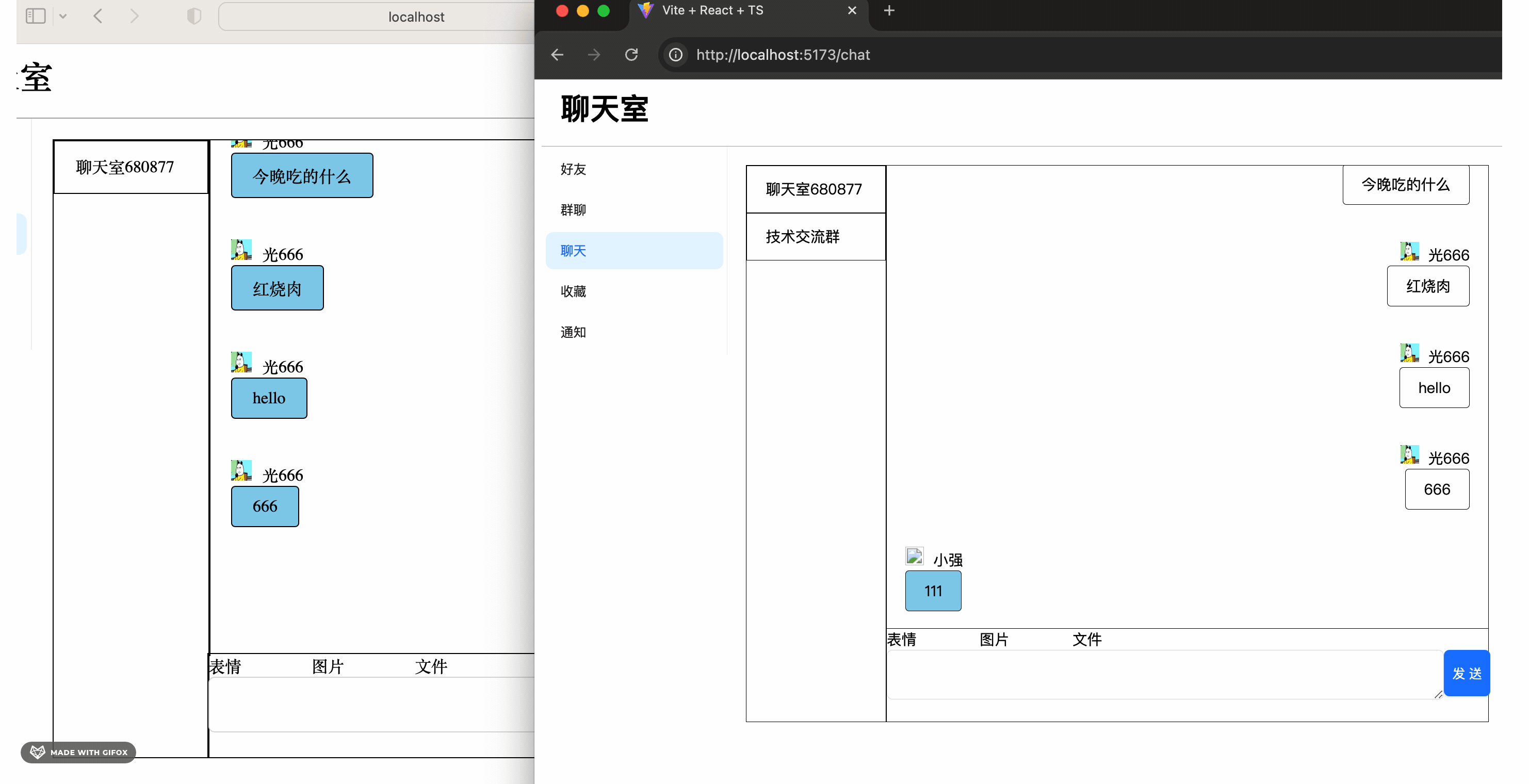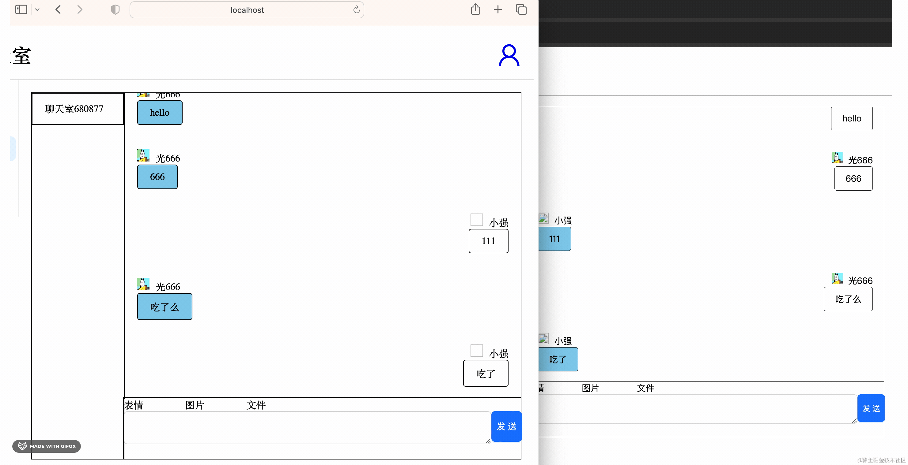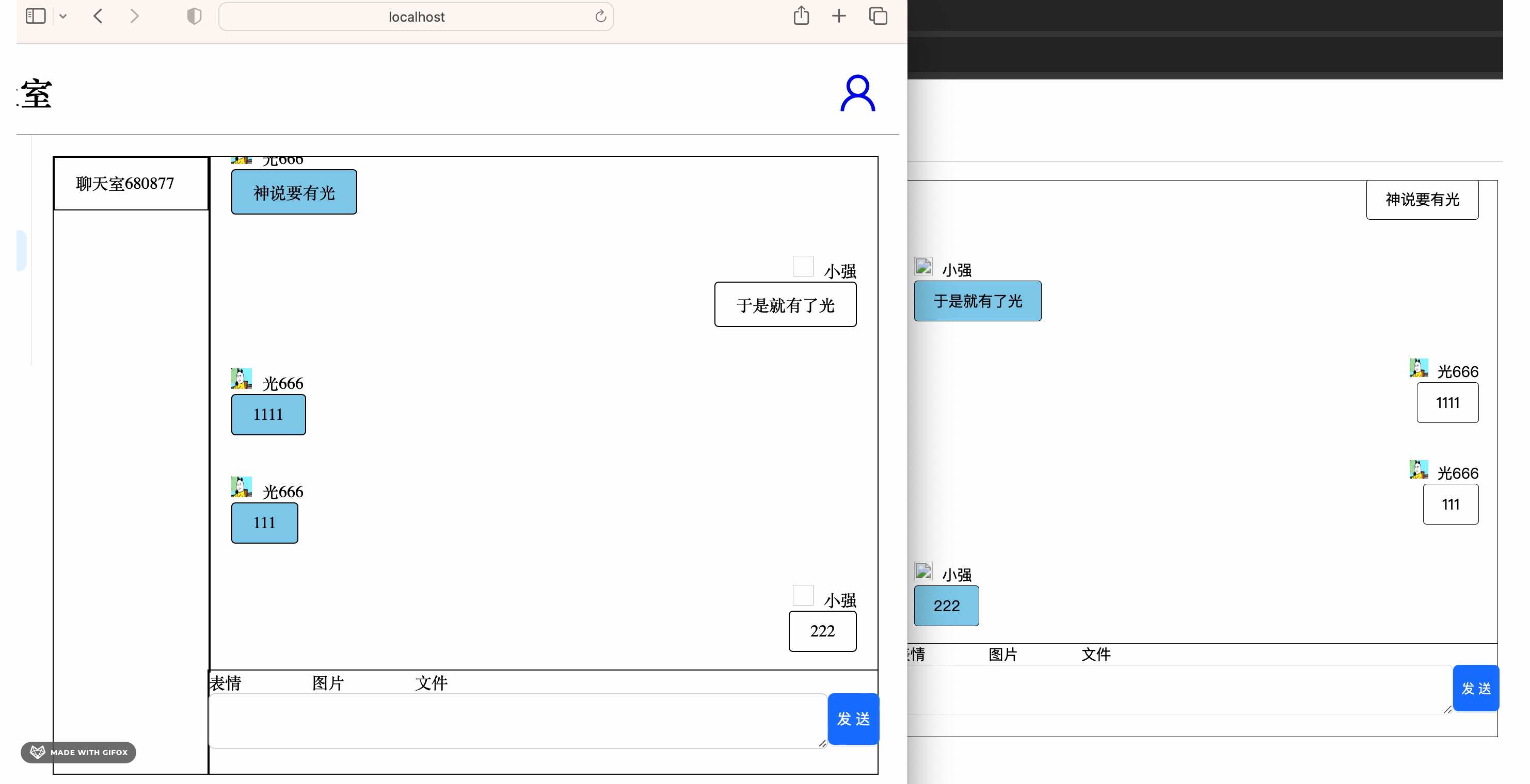 点击左侧切换聊天室,就可以在不同聊天室聊天。
