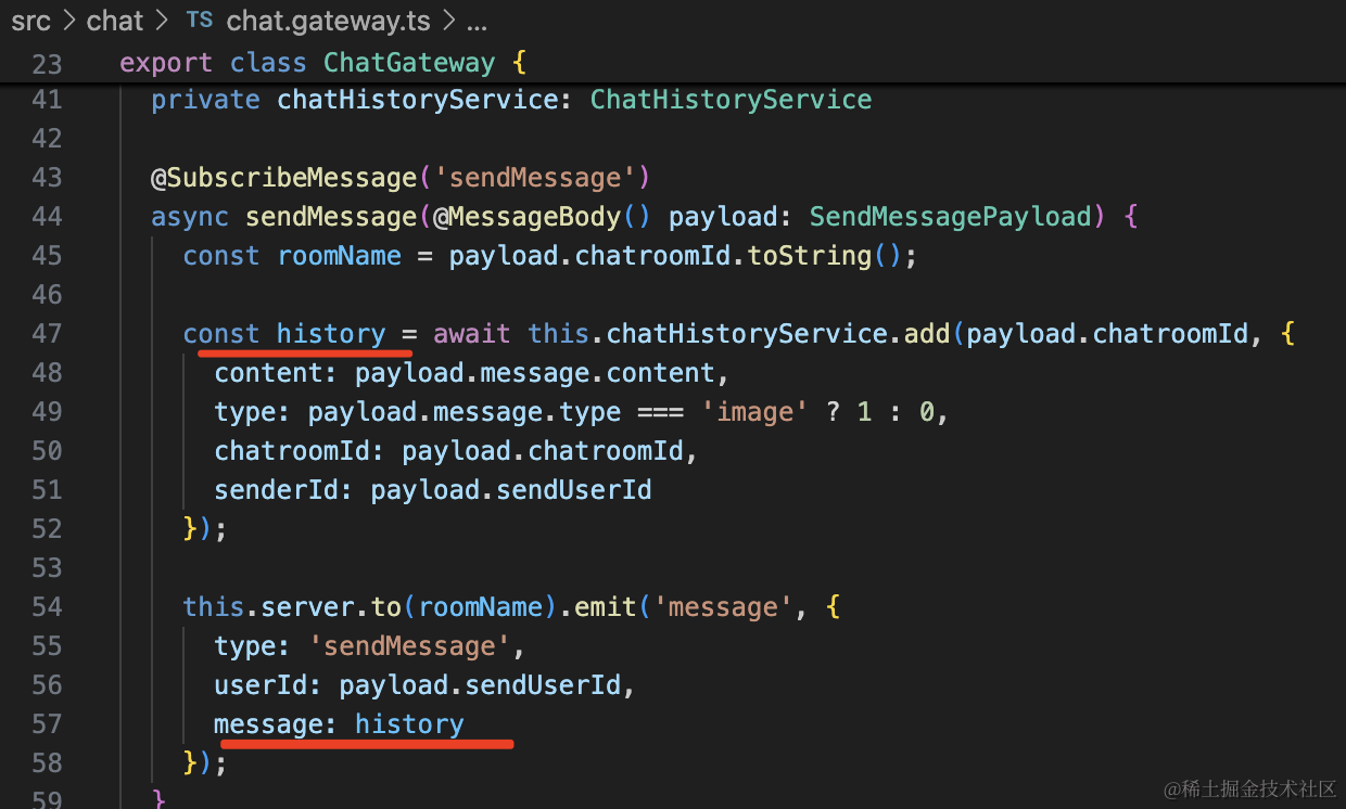 const history = await this.chatHistoryService.add(payload.chatroomId, {