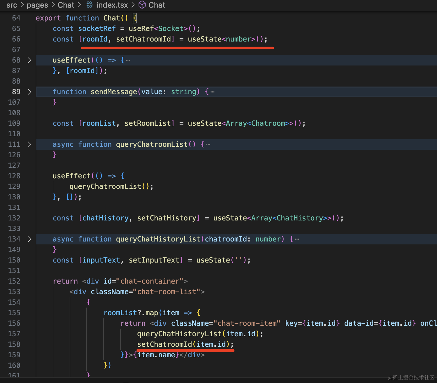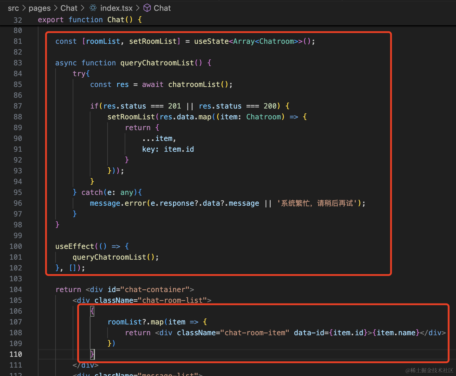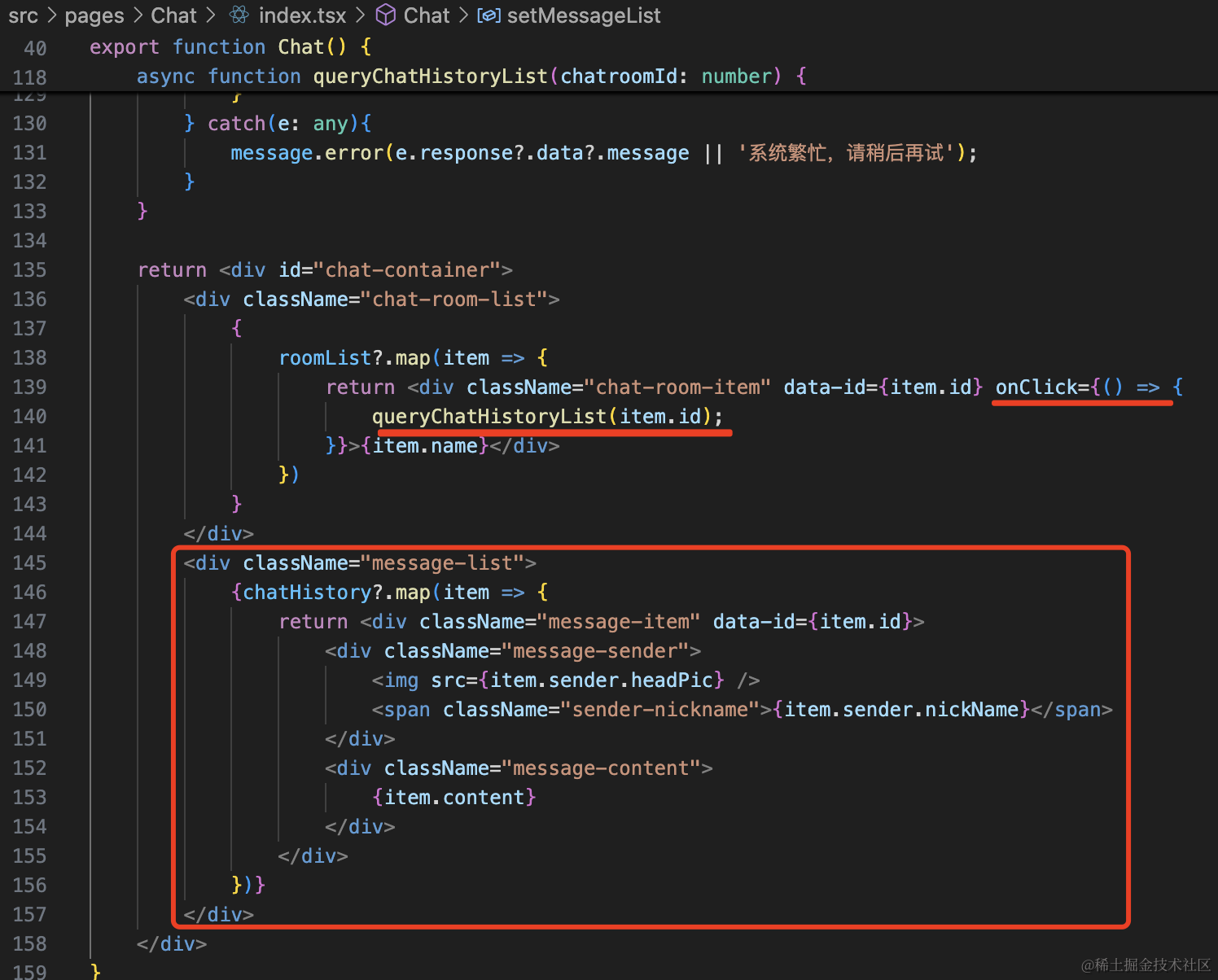 组件里当点击聊天室的时候,就查询对应的聊天记录显示: