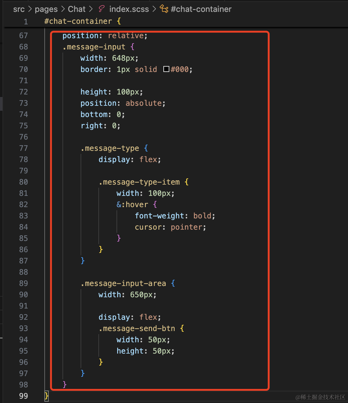 然后右边的布局也是 flex 布局,有 .from-me 的设置 justify-content:right;