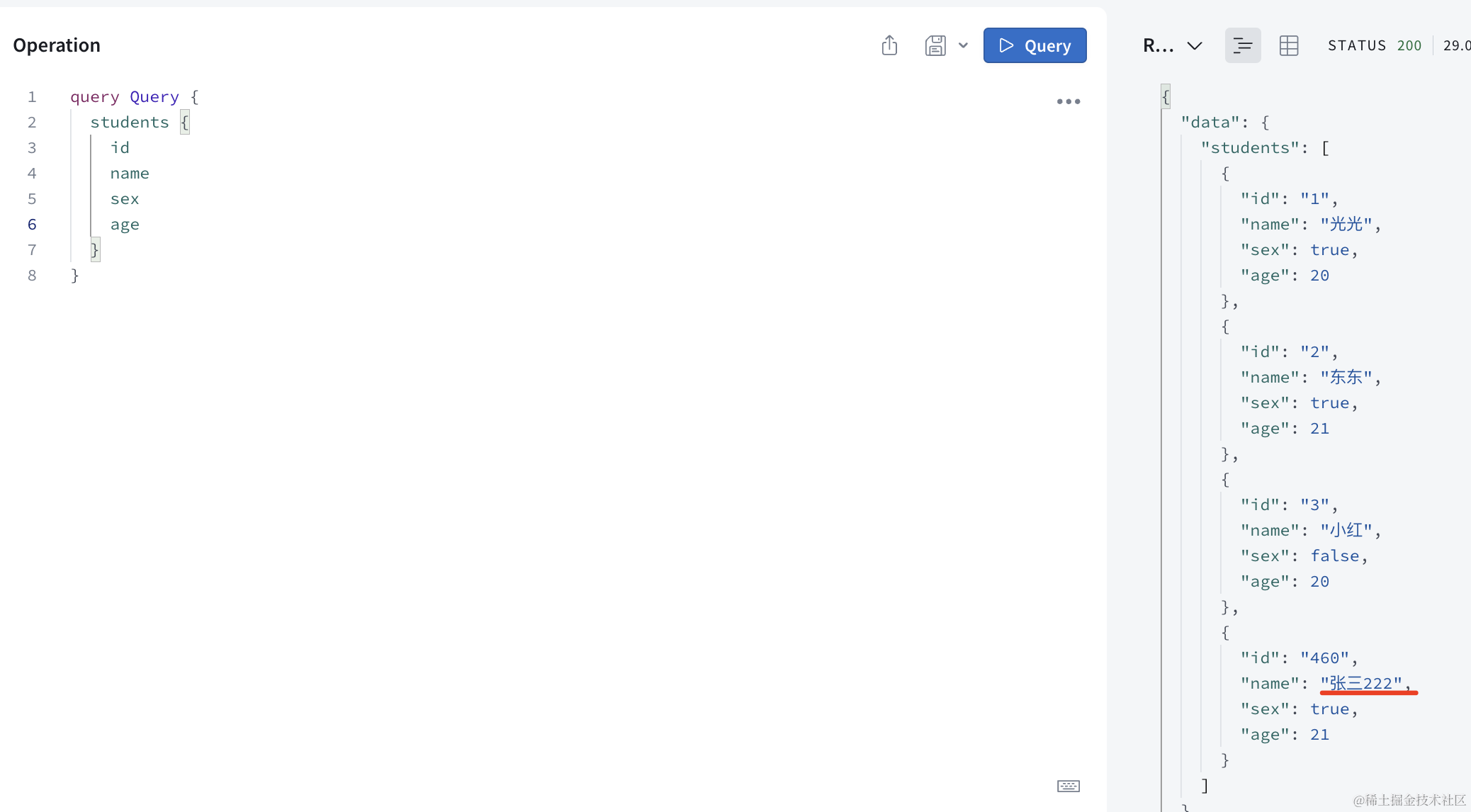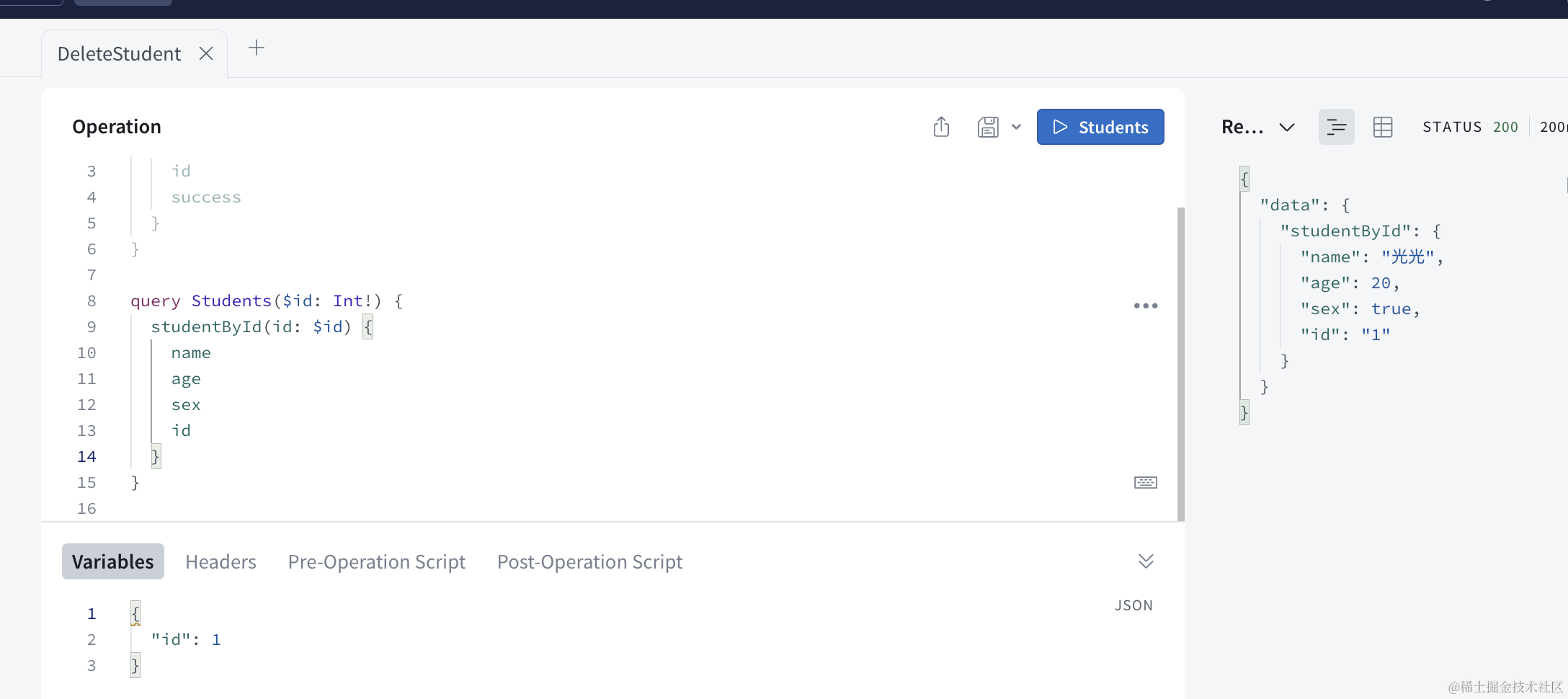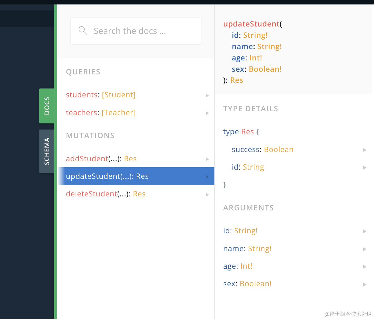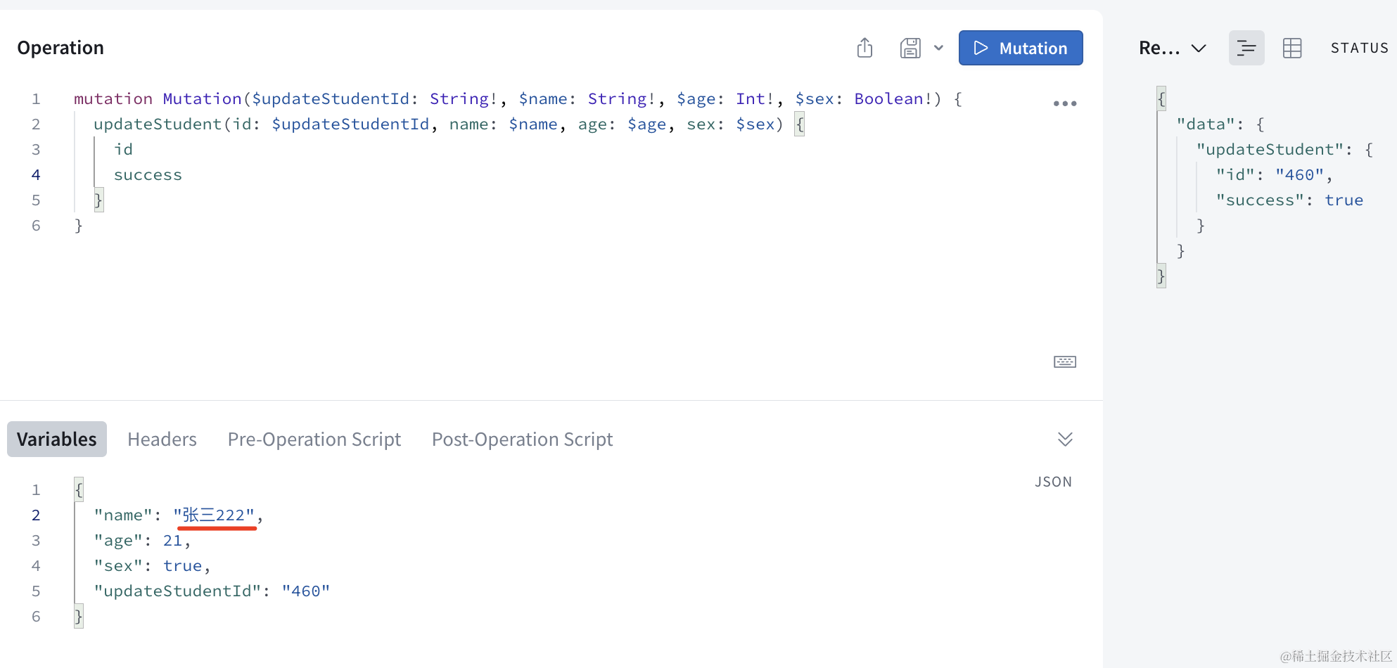 updateStudent(id: String! name:String! age:Int! sex:Boolean!): Res