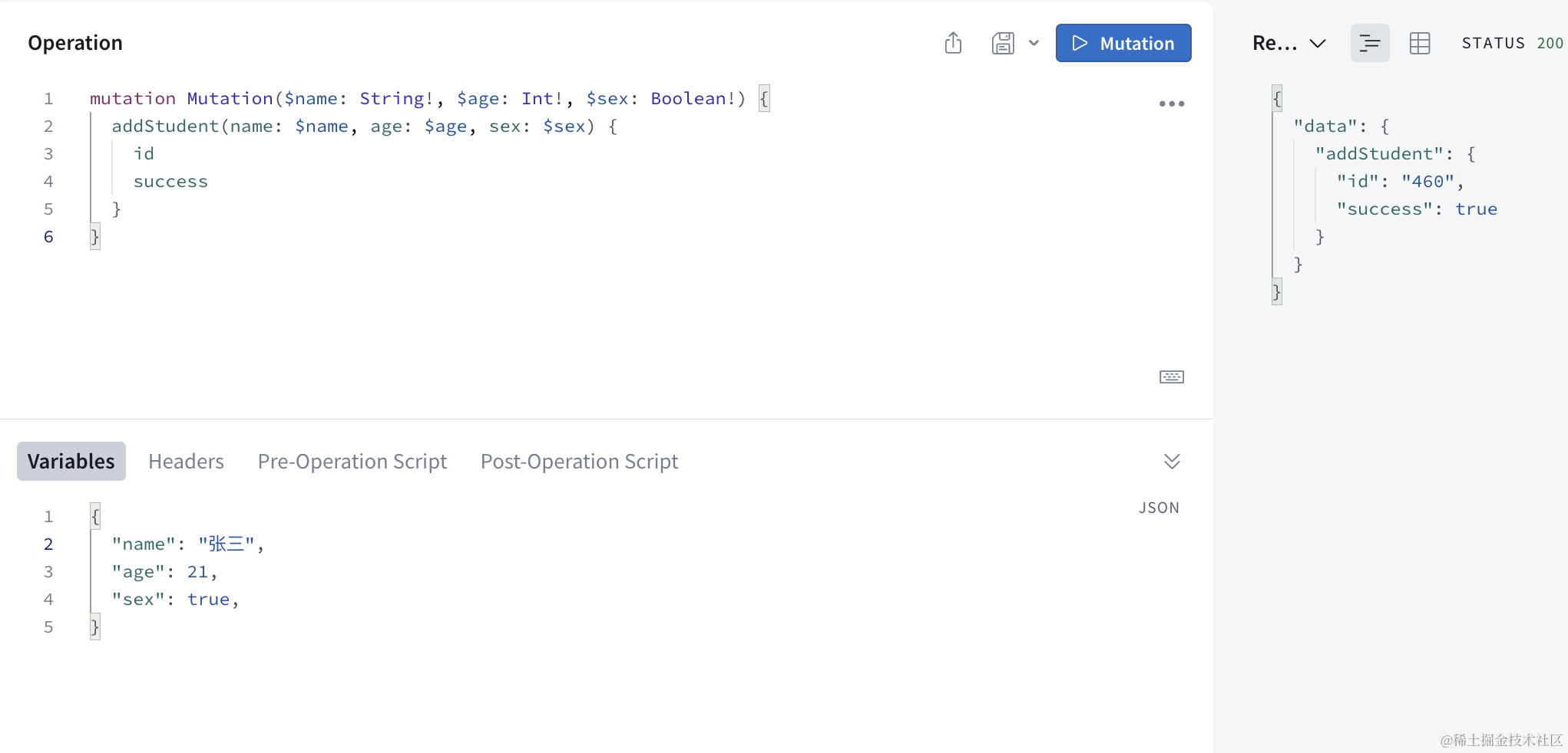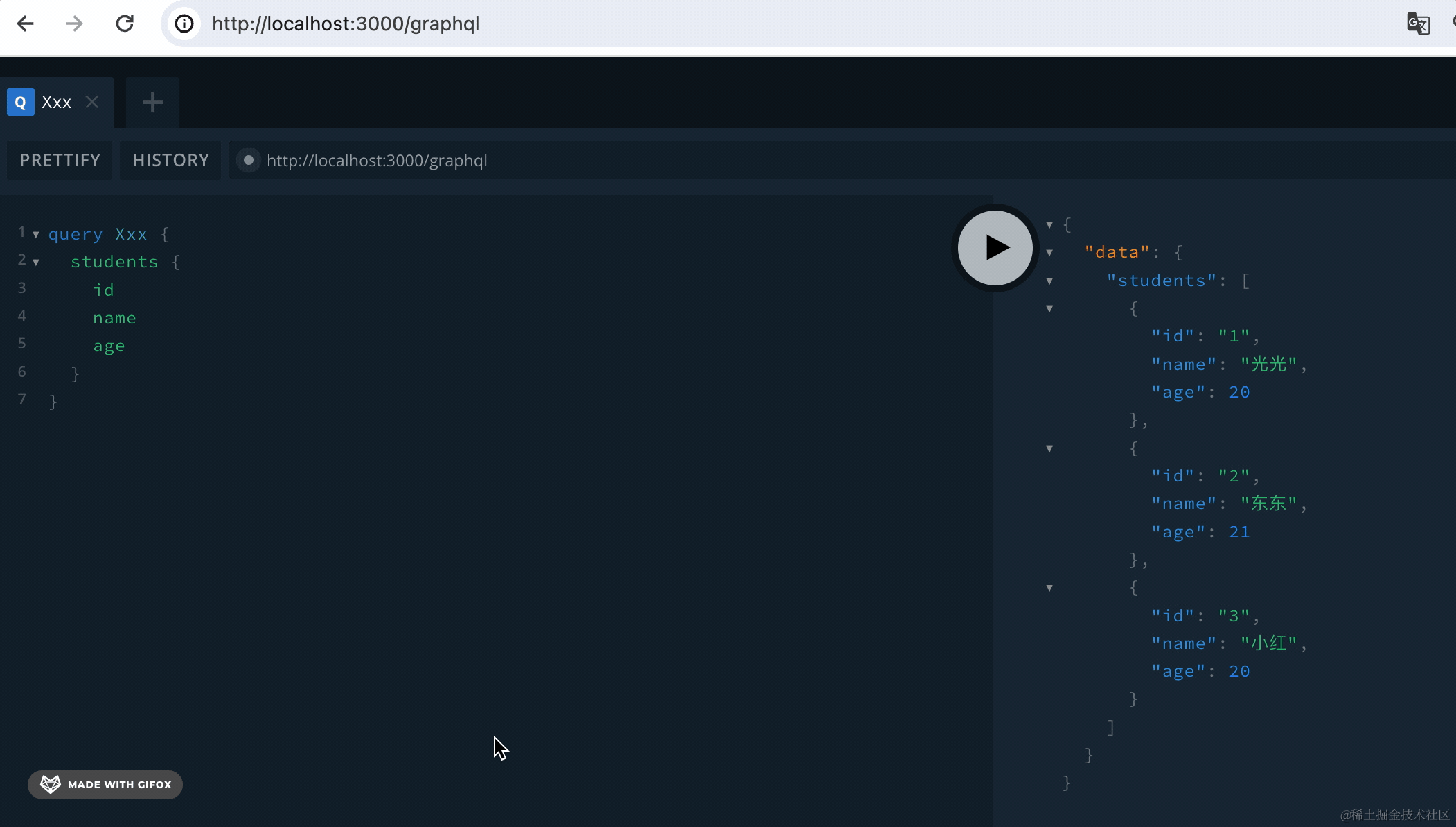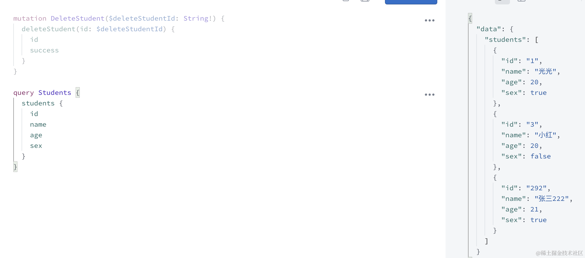 之后就可以在 palyground 里发送 graphql 请求,做 CRUD 了。