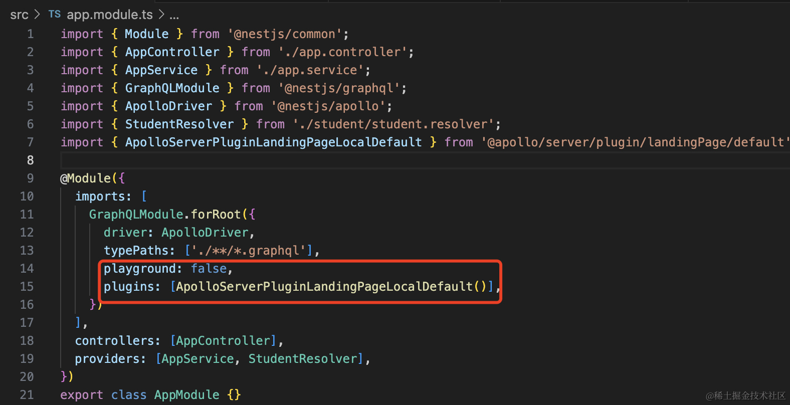 plugins: [ApolloServerPluginLandingPageLocalDefault()],