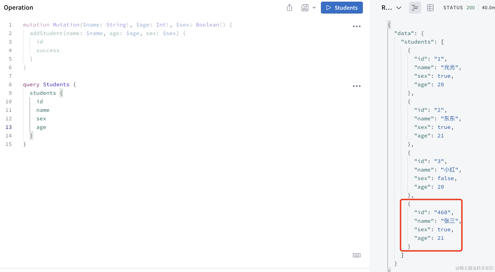 addStudent(name:String! age:Int! sex:Boolean!): Res