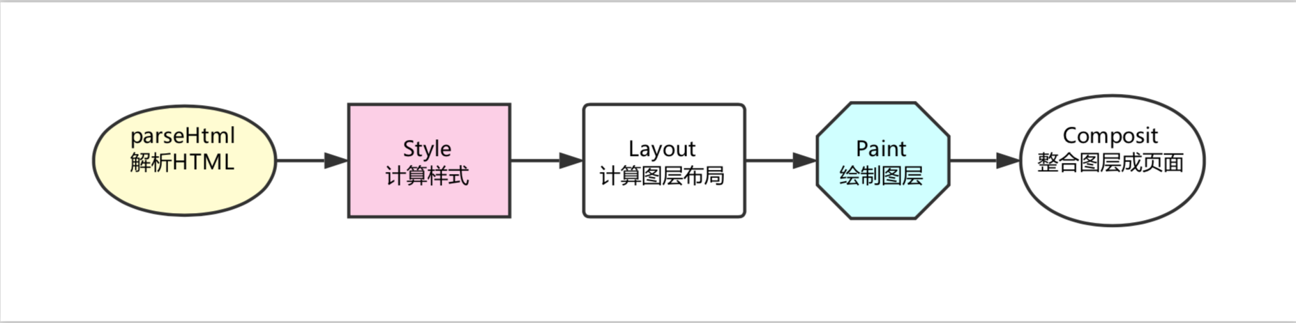 有了对零部件的了解打底,我们就可以一起来走一遍浏览器的渲染流程了。在浏览器里,每一个页面的首次渲染都经历了如下阶段(图中箭头不代表串行,有一些操作是并行进行的,下文会说明):