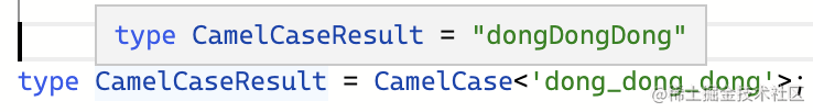 然后使用 TypeScript 提供的内置高级类型 Uppercase 把首字母转为大写,加上 Rest,构造成新的字符串类型返回。